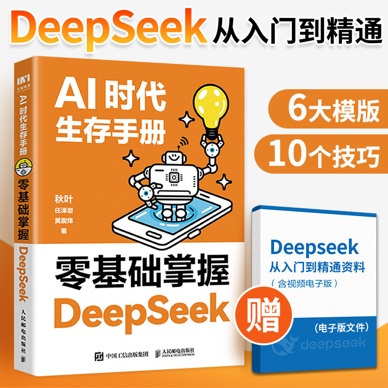 AI时代生存手册 2025新版零基础掌握ai人工智能书籍deepseek使用教程书籍指导手册零基础学习官方图解教程书全攻略实用操作实战书