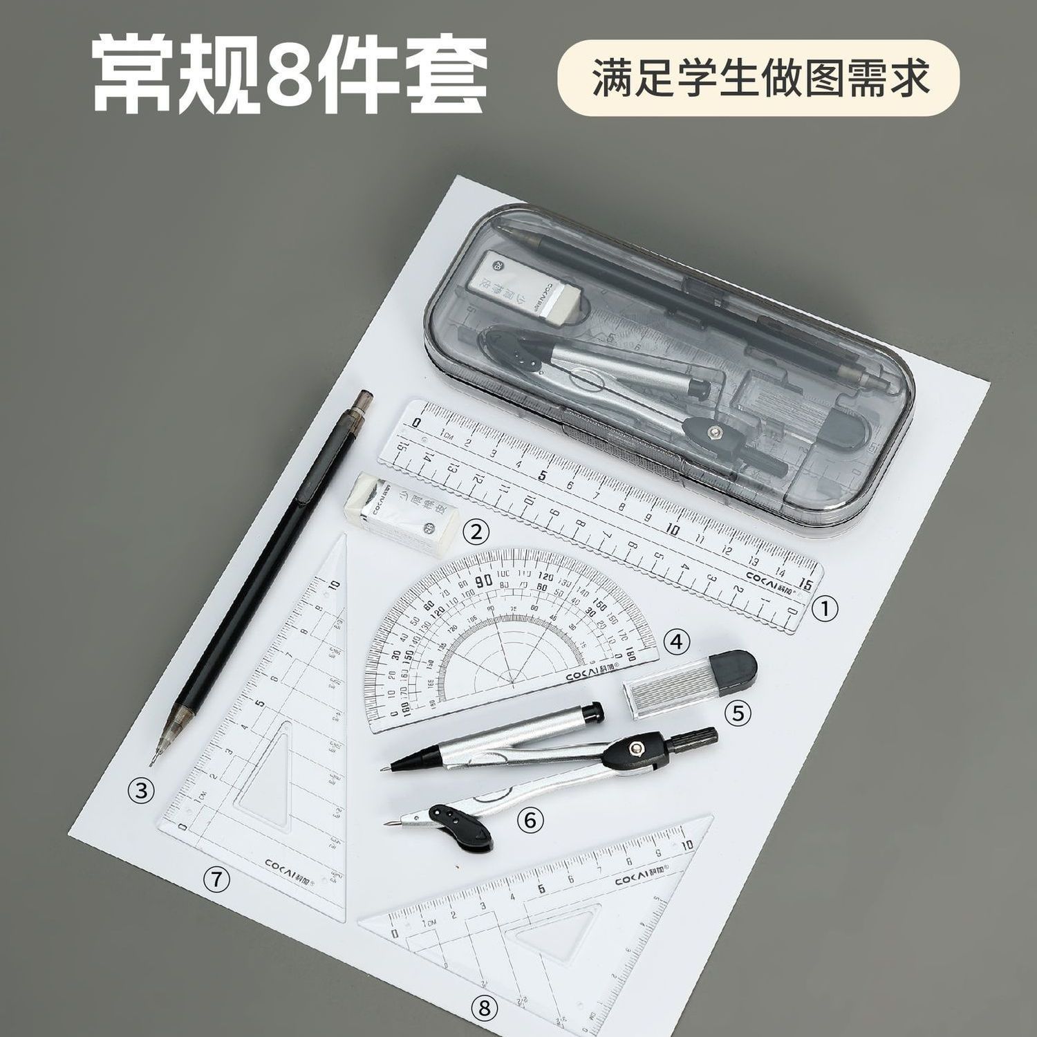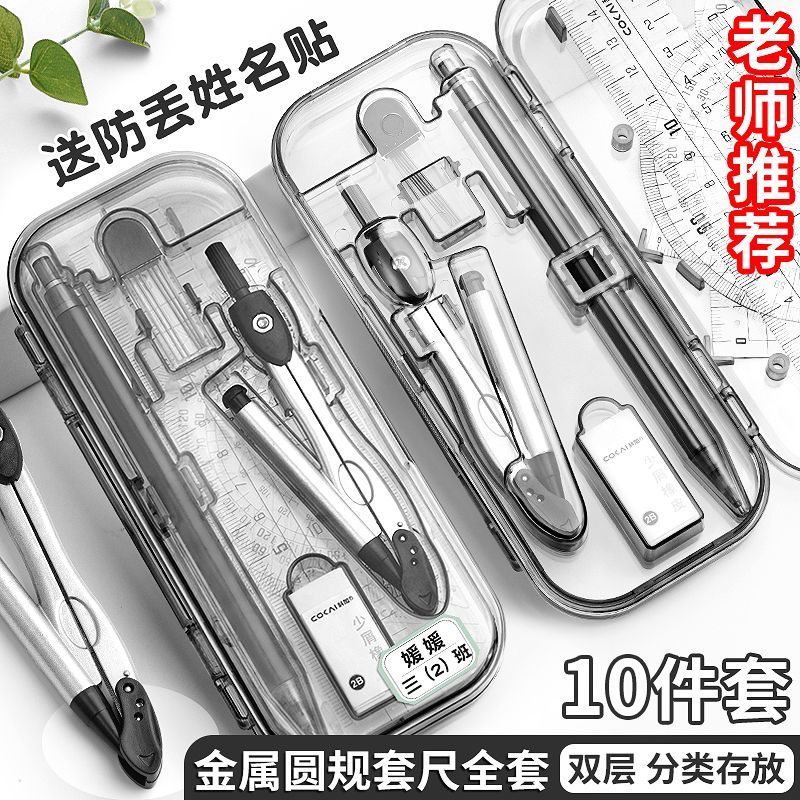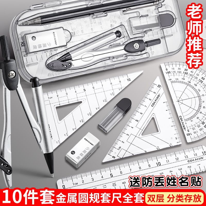 圆规尺子套装画图工具小学生初中生考试专用专业绘图作图尺规夹笔款三角尺三角板直尺多功能金属铁圆规高颜值