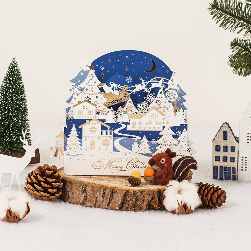 圣诞贺卡英文立体圣诞卡明信片创意3d新年ins风节日卡片礼物装饰
