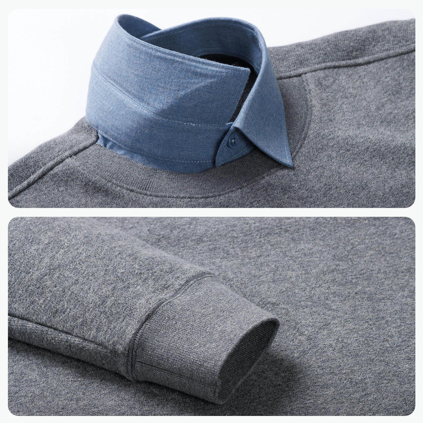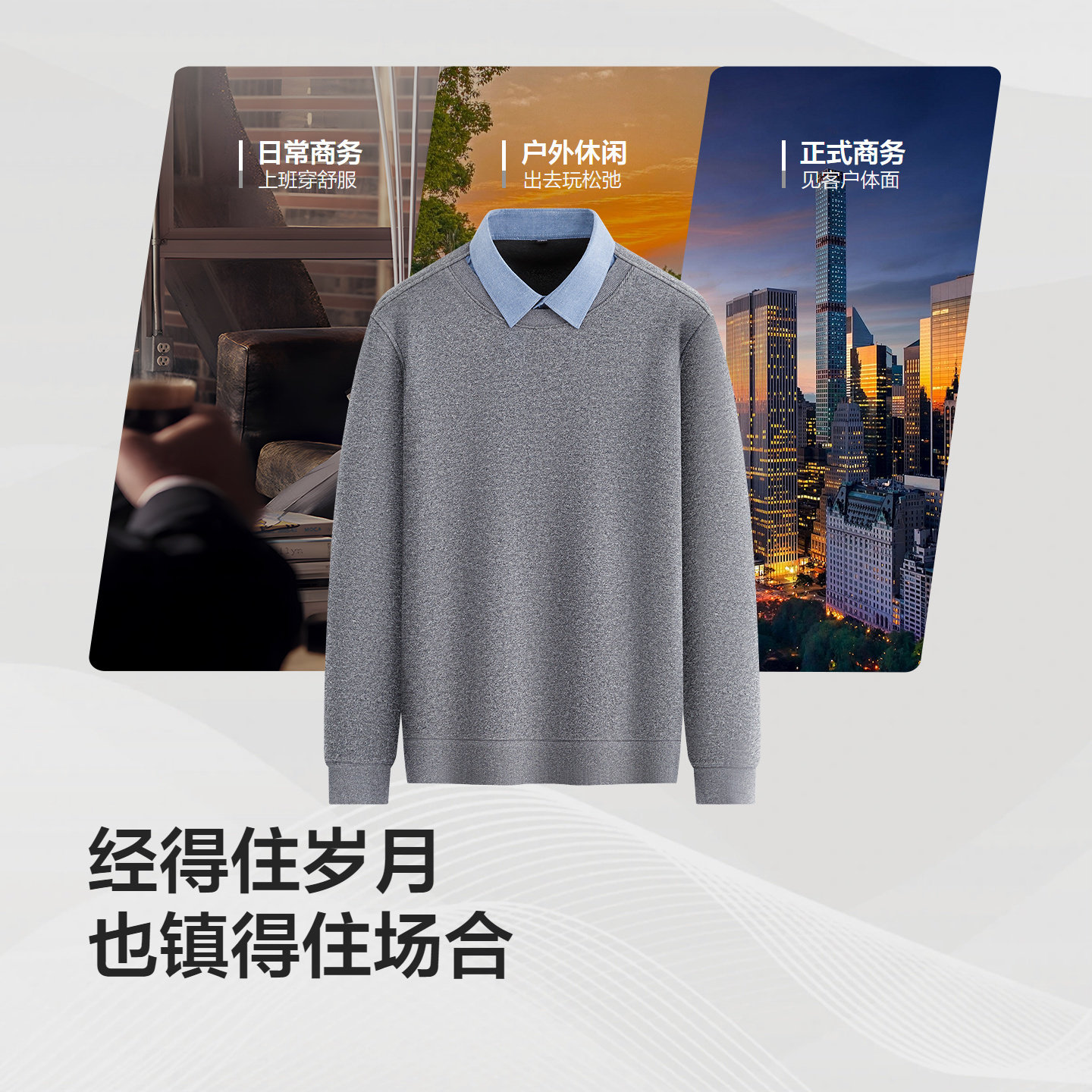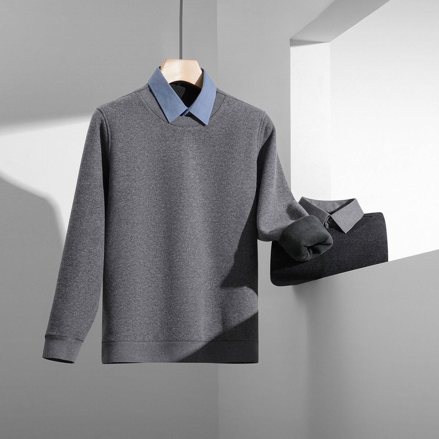 【奥粒绒】红豆男装假两件针织衫25秋冬毛衣衬衫领加厚上衣