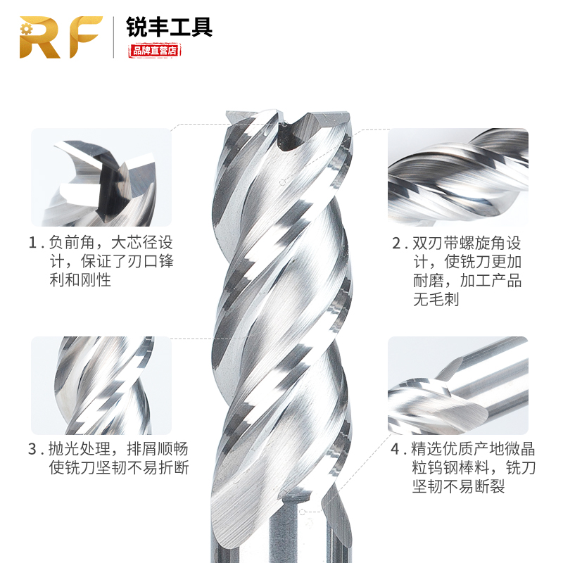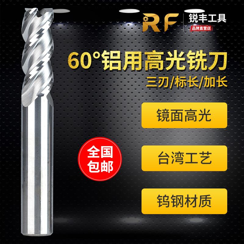 60度合金三3刃镜面铜铝专用高光CNC数控无刀纹铝用钨钢立铣刀加长