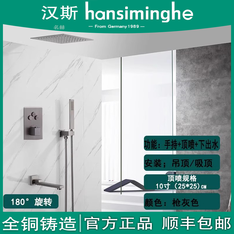 汉斯hansiminghe全铜恒温淋浴花洒套装热熔预埋嵌入墙式暗装花洒