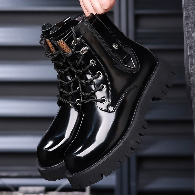 马丁靴男2025春秋新款亮皮高帮短靴户外男鞋冬季加绒保暖机车靴子
