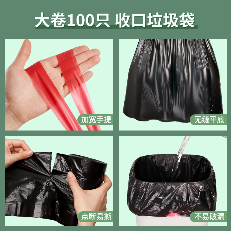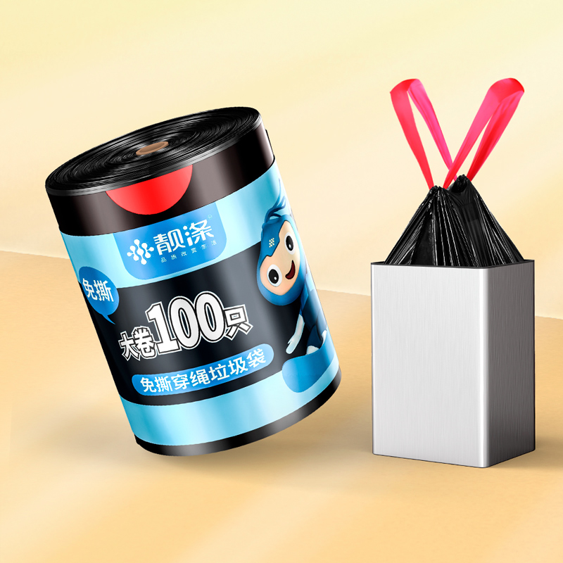 靓涤家用垃圾袋100只抽绳式加厚加大家用实惠装收口塑料袋