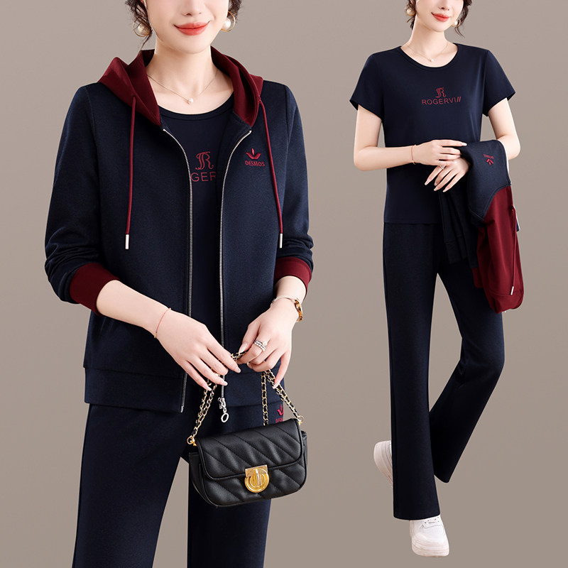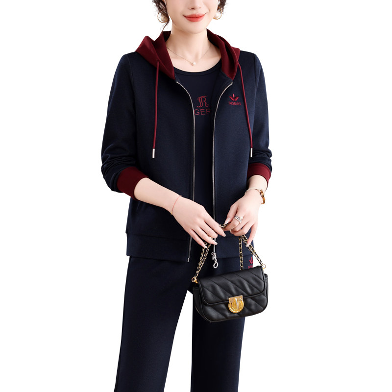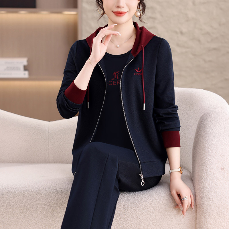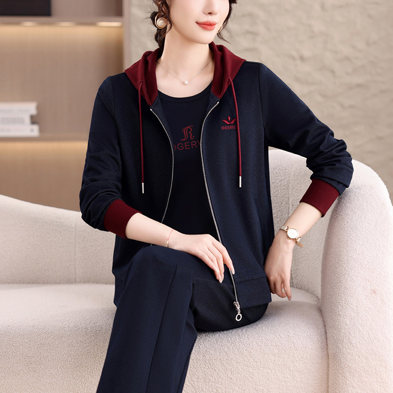 2026春季新款女士休闲运动套装连帽开衫三件套显瘦洋气