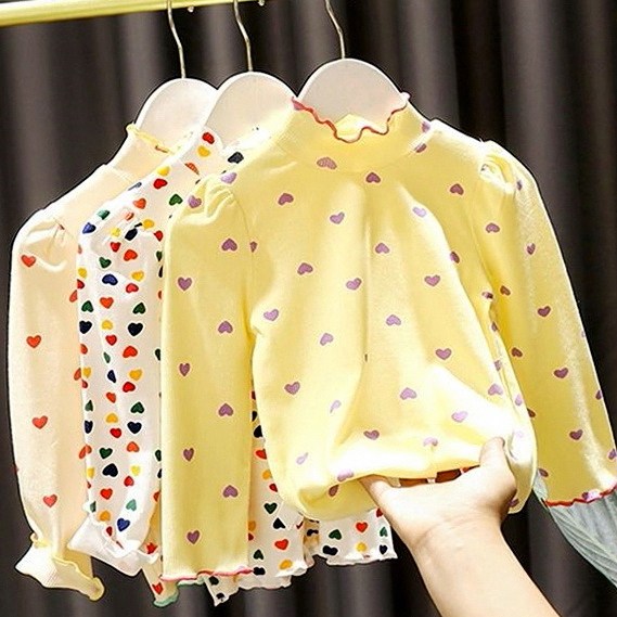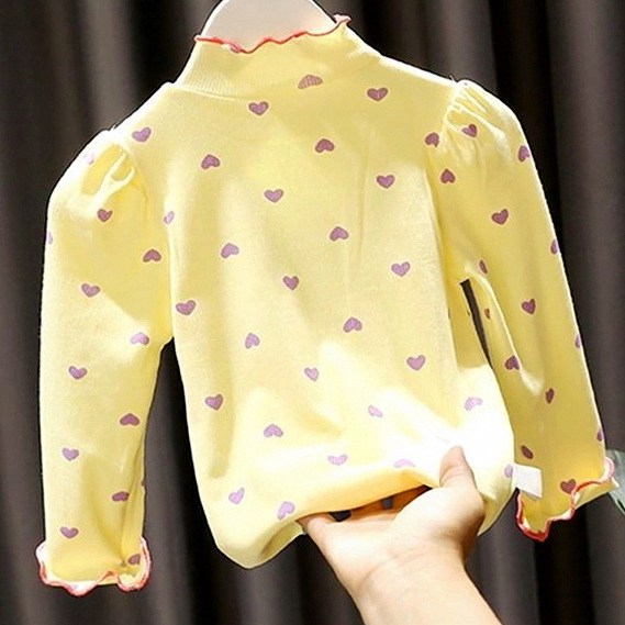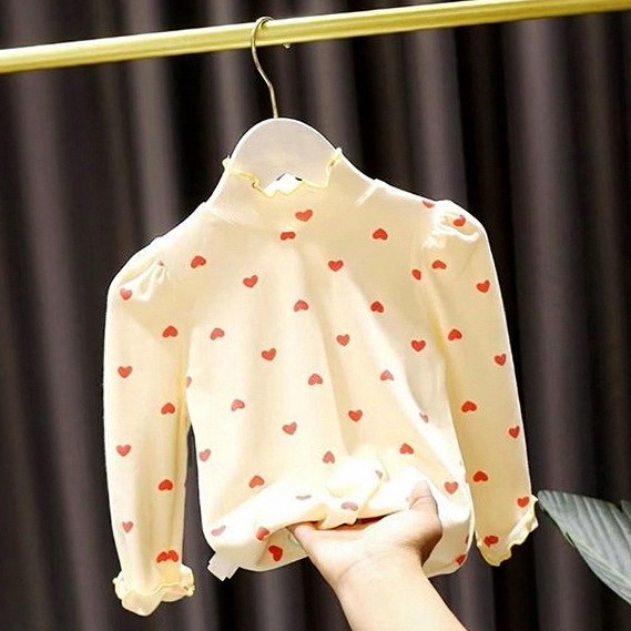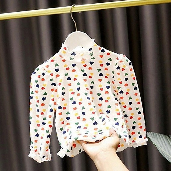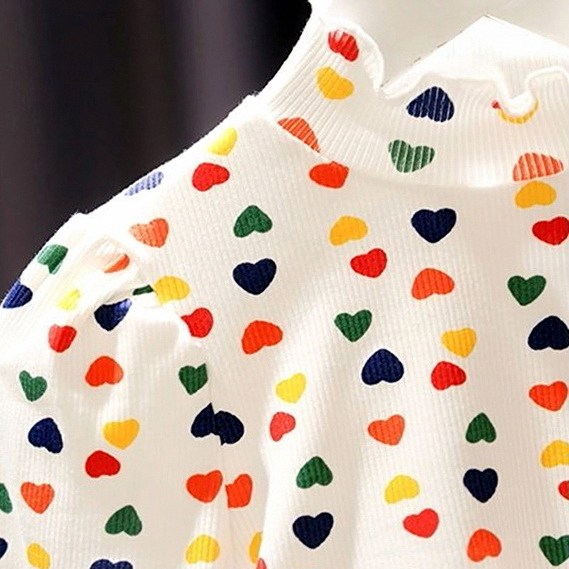 秋季半高领女童百搭女亲子纹时尚爱心T恤女婴儿童弹力打底衫