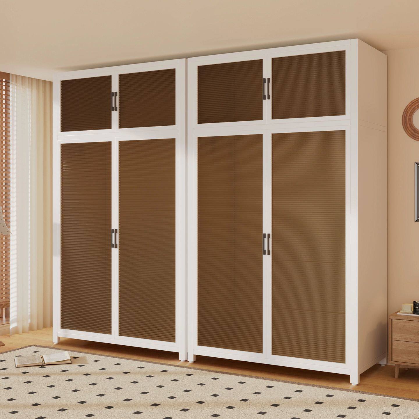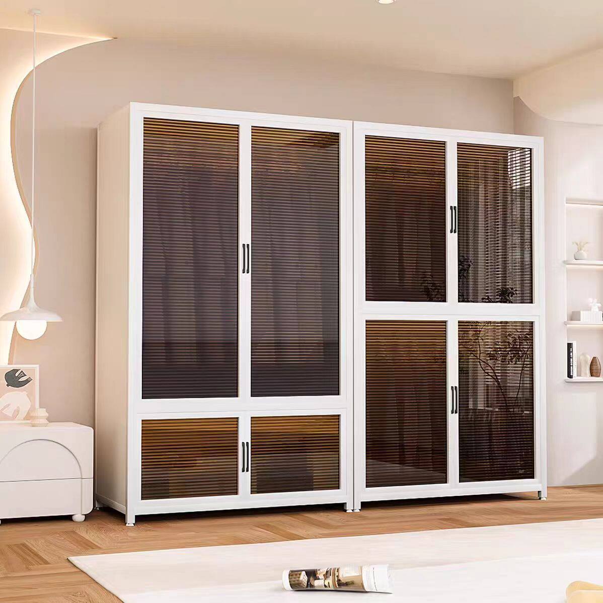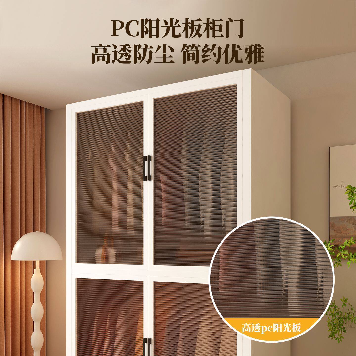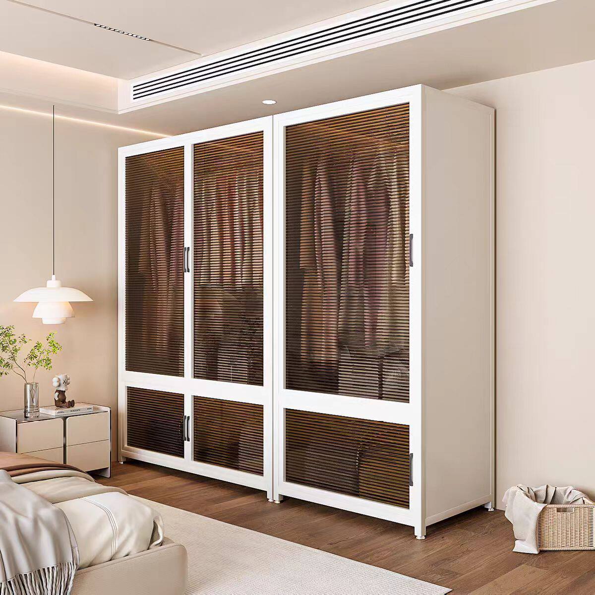 茶色门板钢制简易衣柜家用卧室出租房小户型加厚钢架组装收纳衣橱