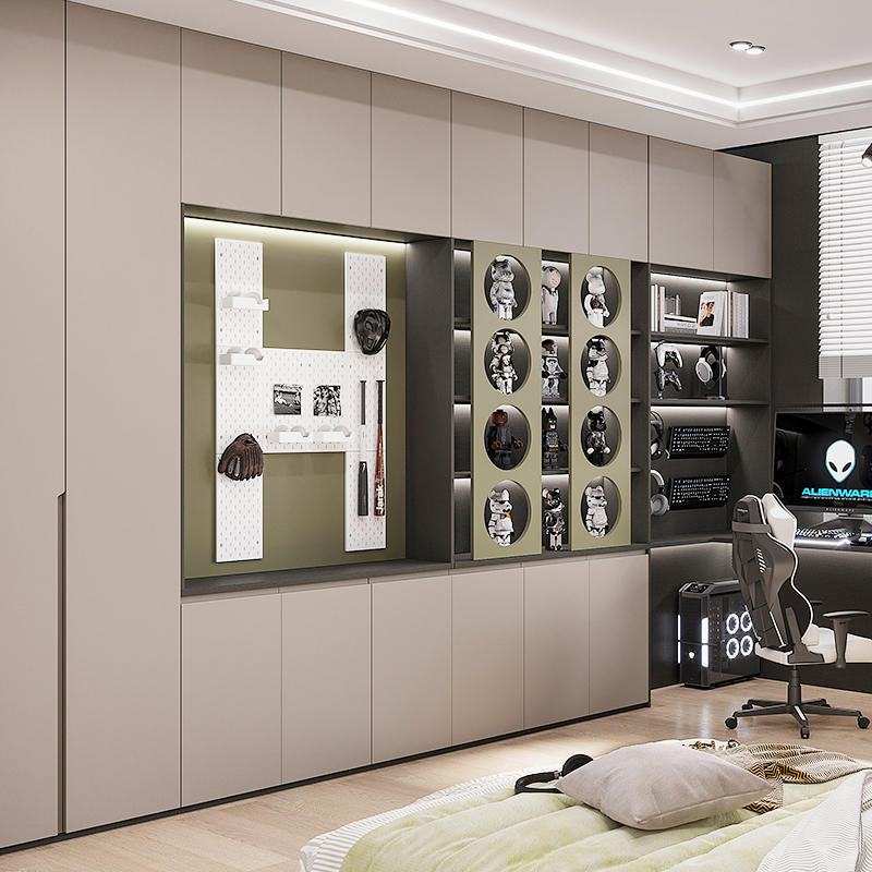 顾家全屋定制儿童房榻榻米平开门衣柜书柜书桌一体组合柜超能空间