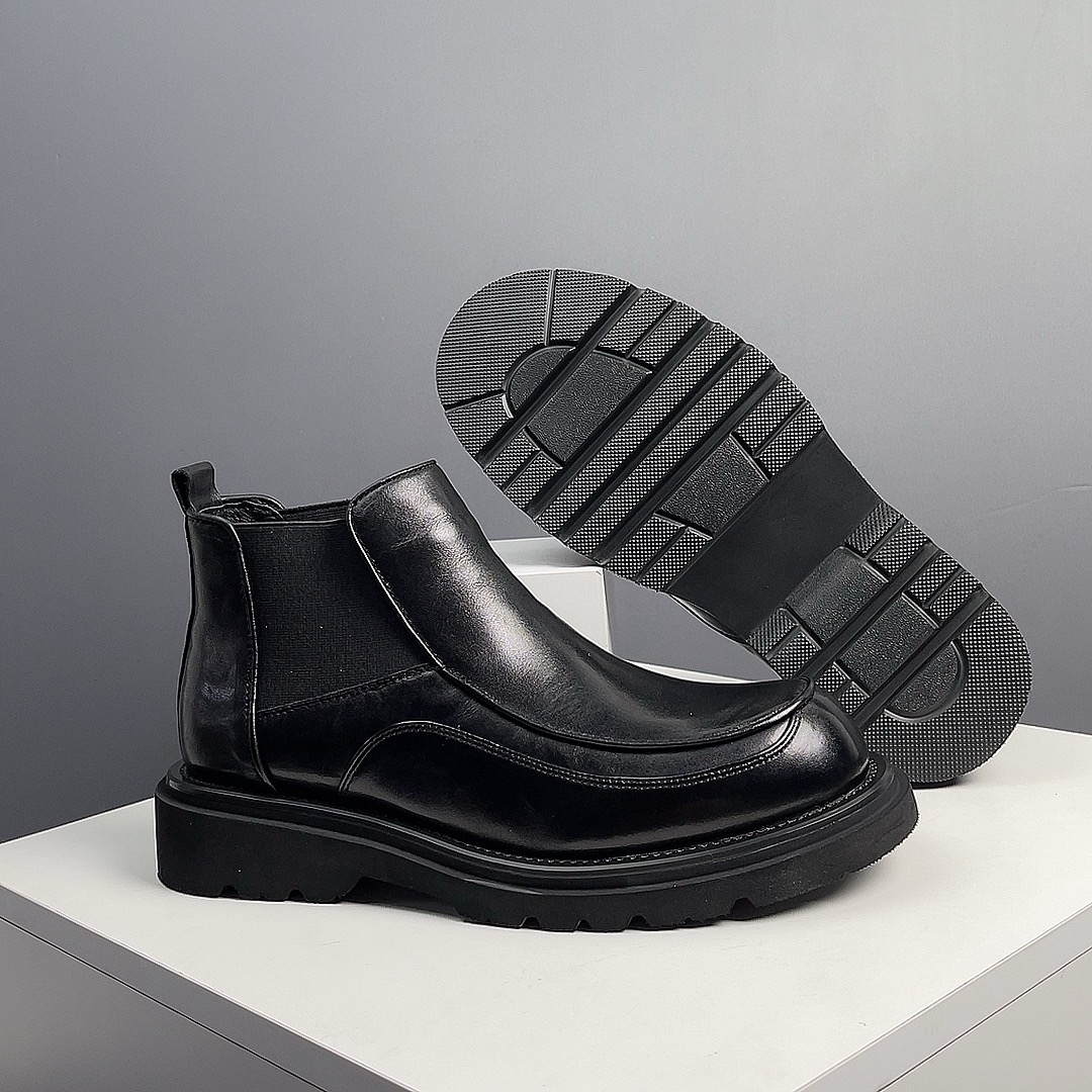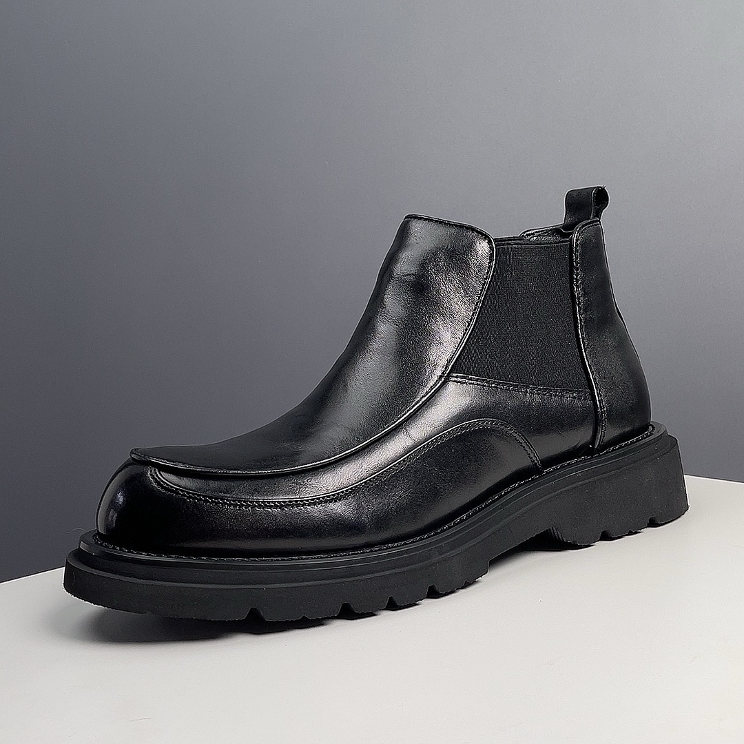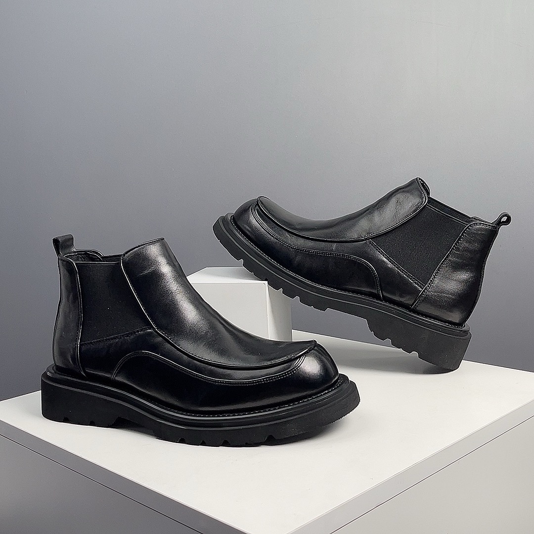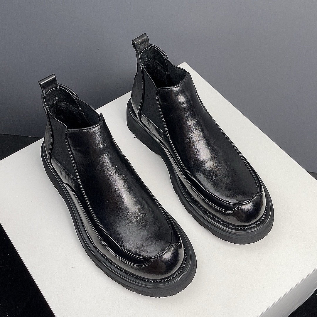 枫之时尚冬季厚底套筒皮靴加绒加厚保暖牛皮朋克男士流行切尔西靴