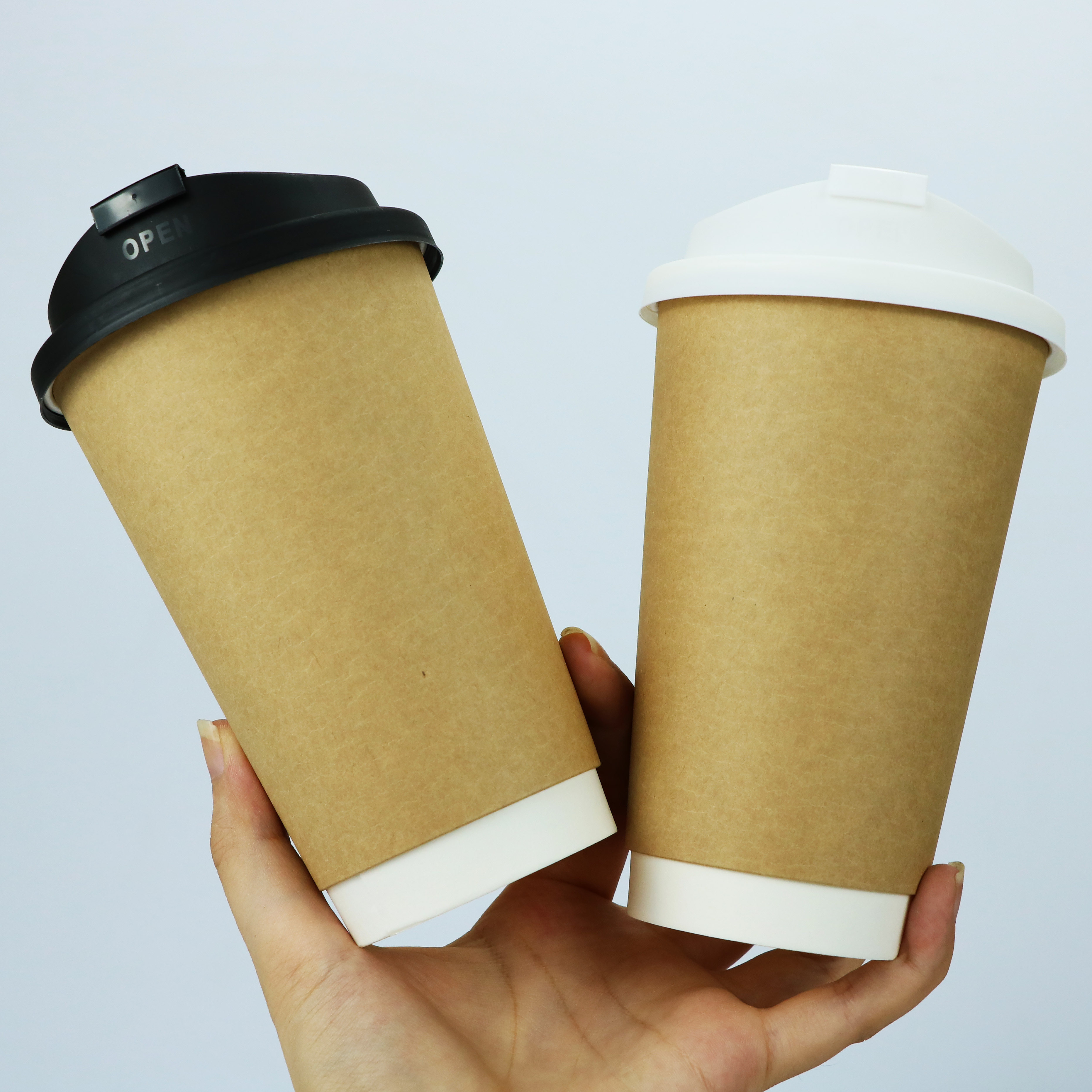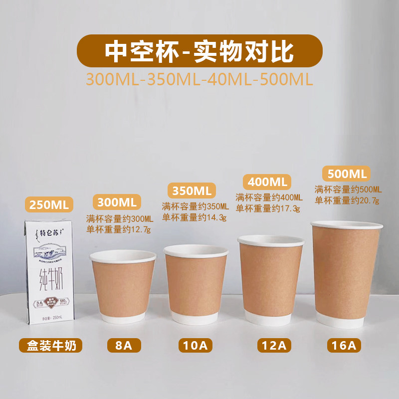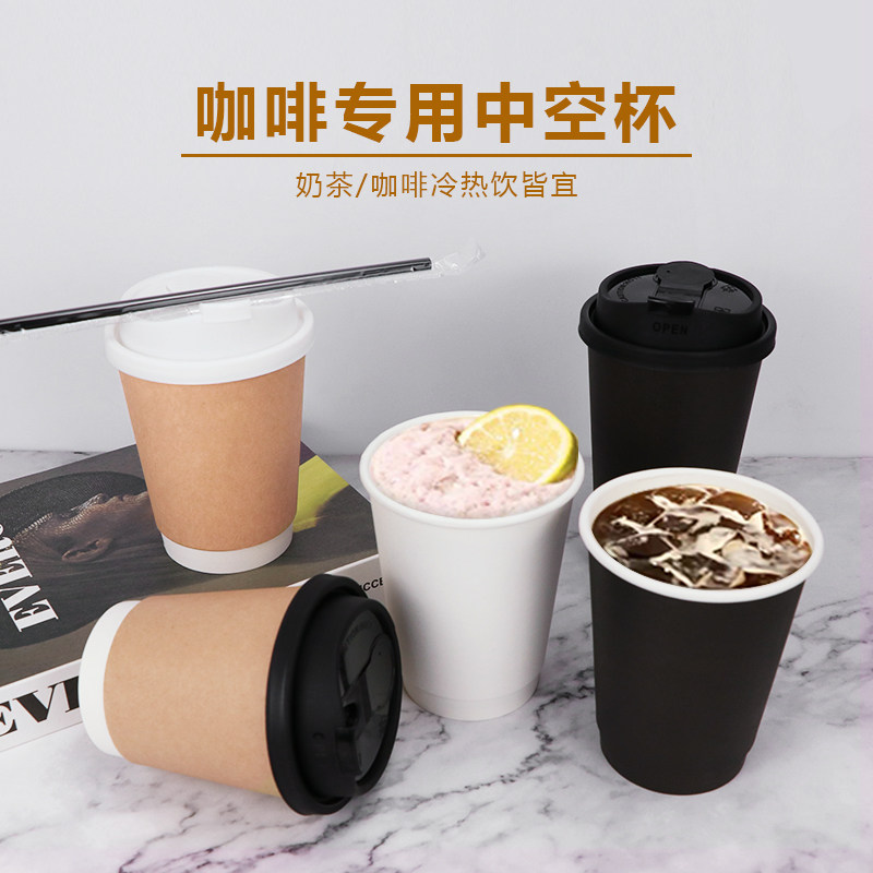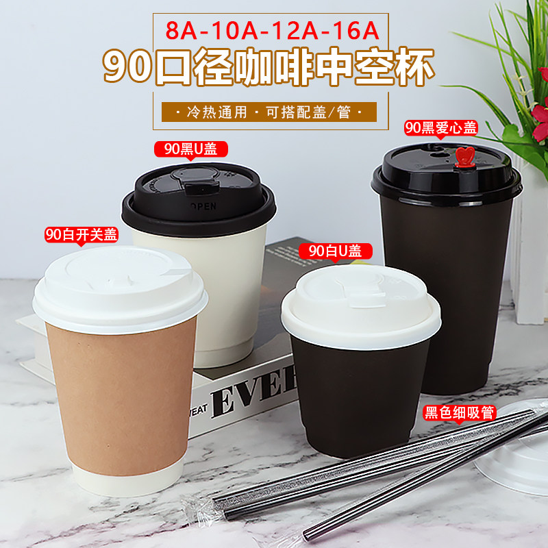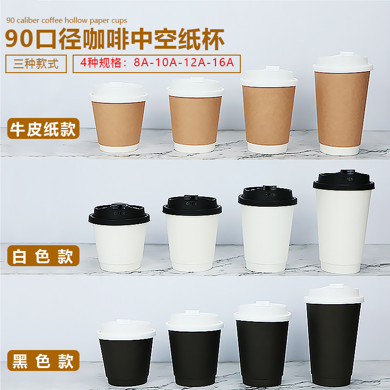 加厚双层牛皮中空纸杯90口径一次性纯白纸杯纯黑咖啡拿铁杯冷热杯