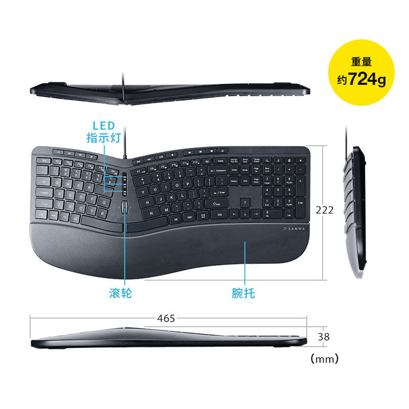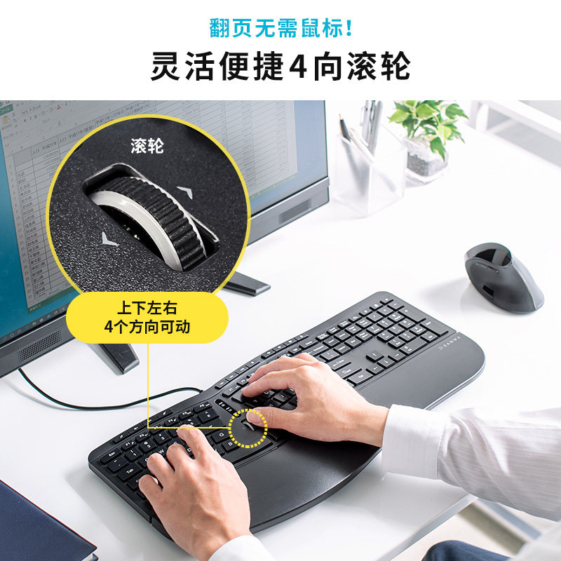 日本SANWA人体工学键盘无线蓝牙带腕托游戏办公家用充电打字外设