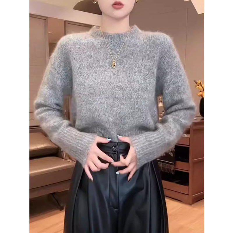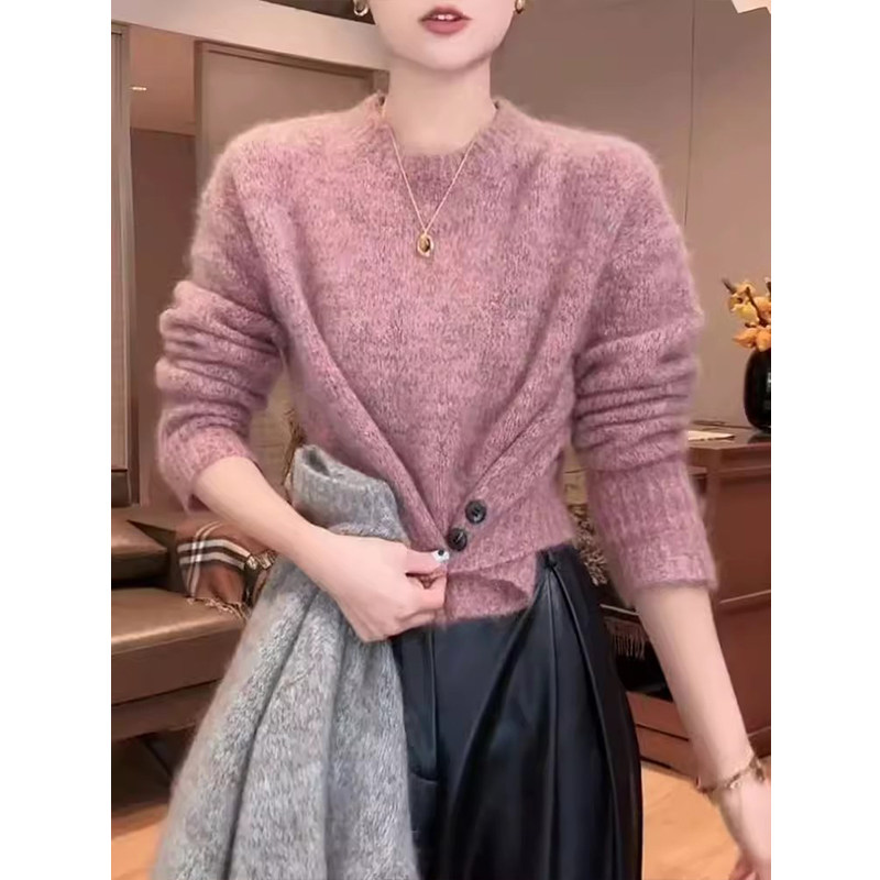 粉色毛衣女士秋冬慵懒高级感软糯加厚内搭掐腰短款打底针织衫上衣