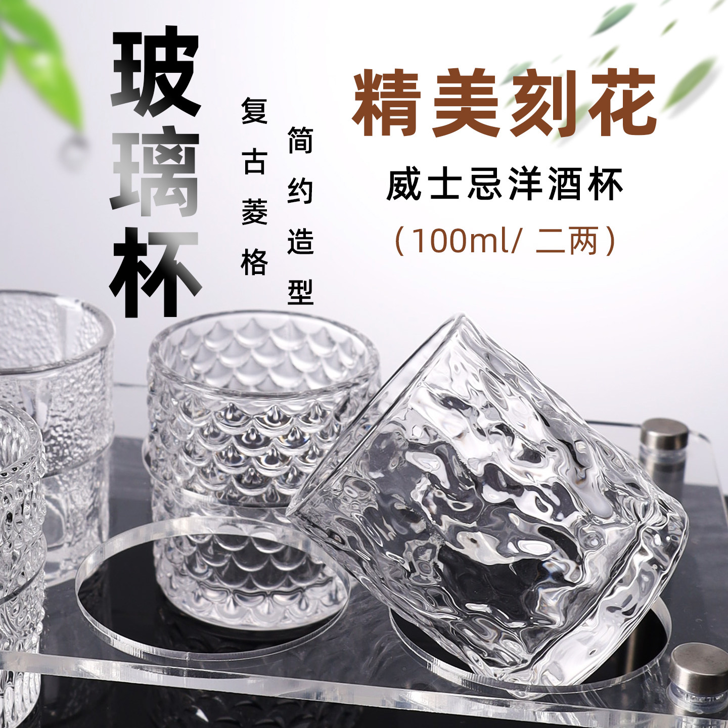 新款刻花100ml2两杯白酒杯高颜值玻璃杯一口杯洋酒啤酒杯酒具套装