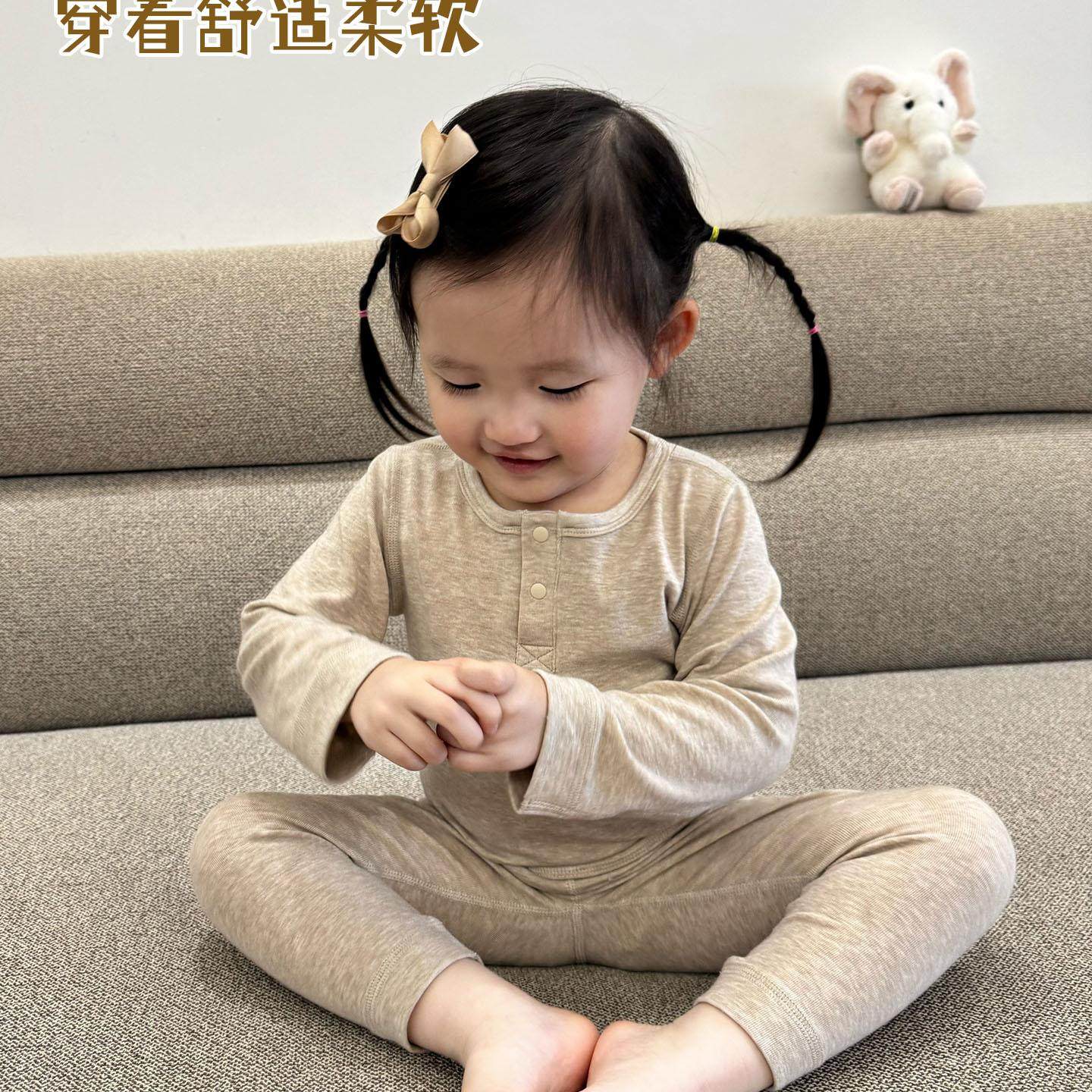 儿童羊毛天丝A类无骨睡衣春秋衣套装款婴儿衣服男女宝宝家居服