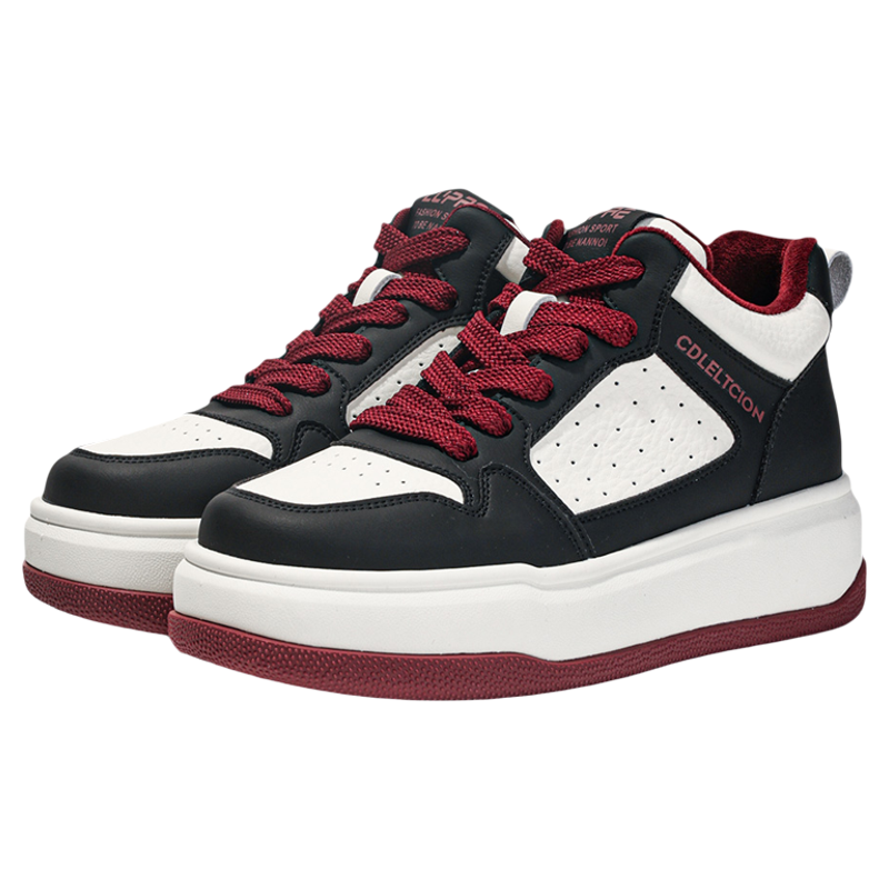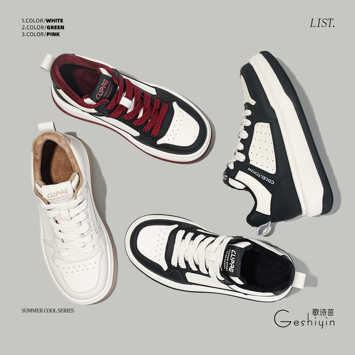 歌诗茵真皮高帮鞋女2026新款冬加绒运动休闲鞋时尚百搭厚底板鞋