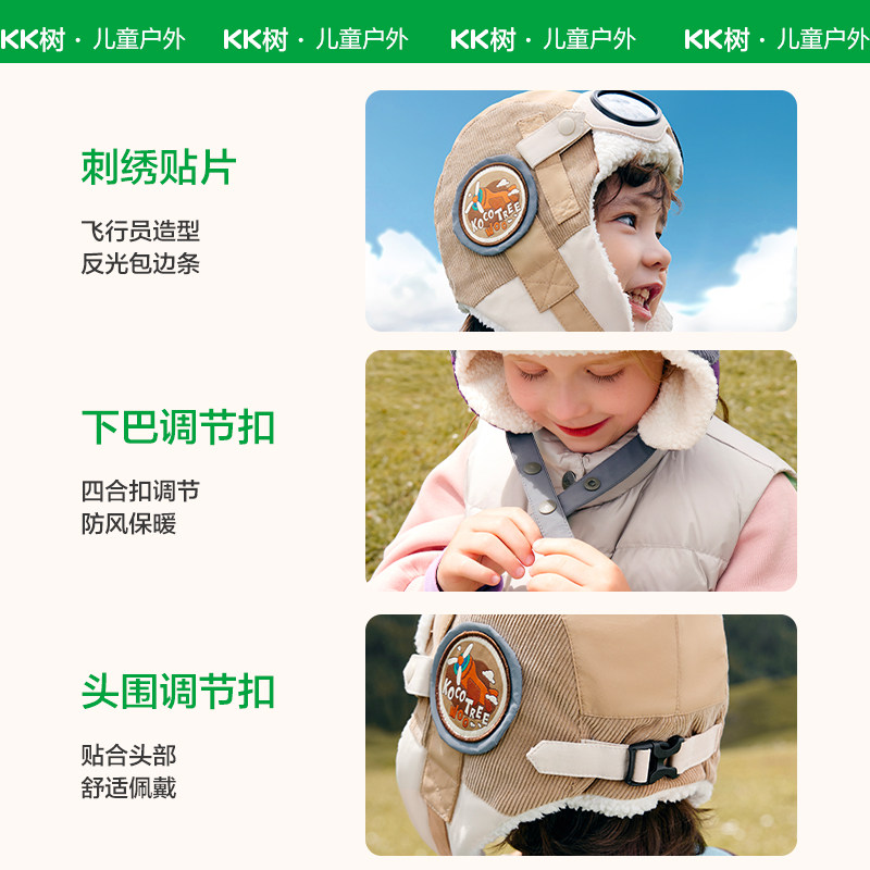 KK树儿童飞行员帽子冬男童雷锋女孩护耳防风防寒宝宝保暖2025新款