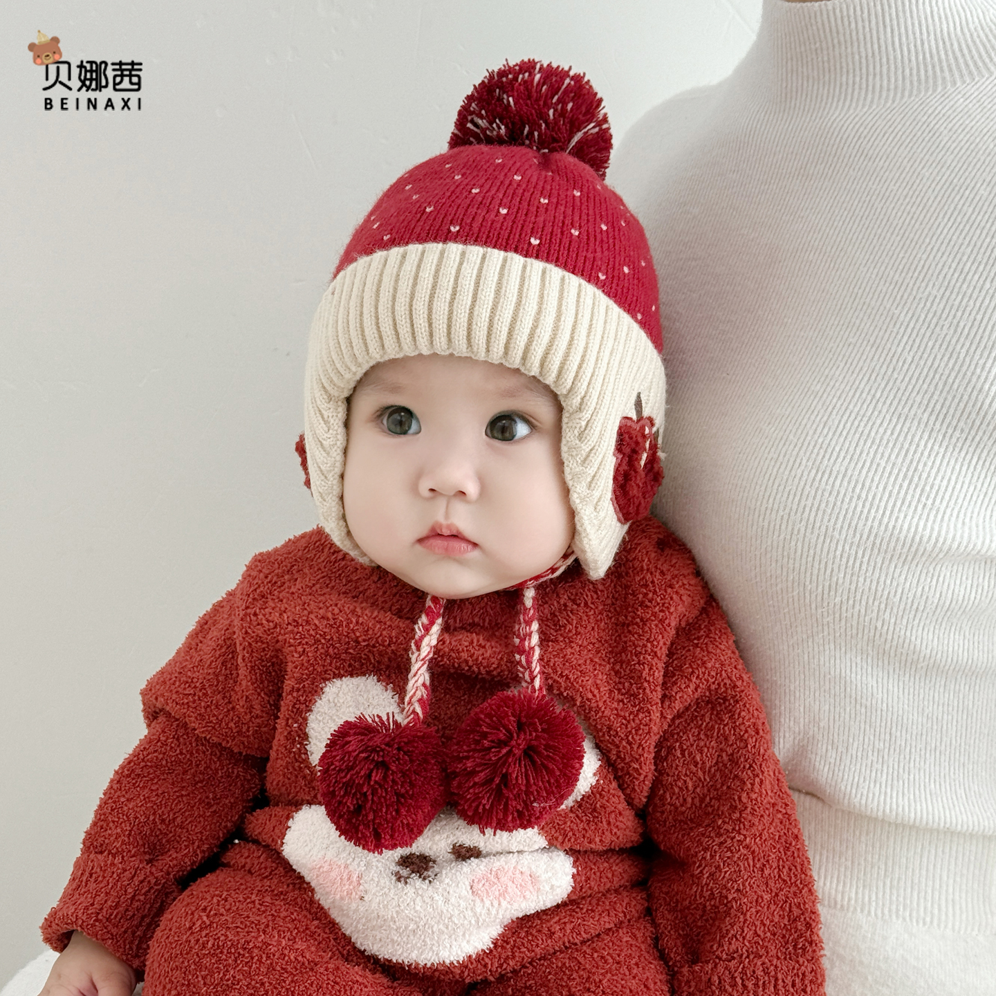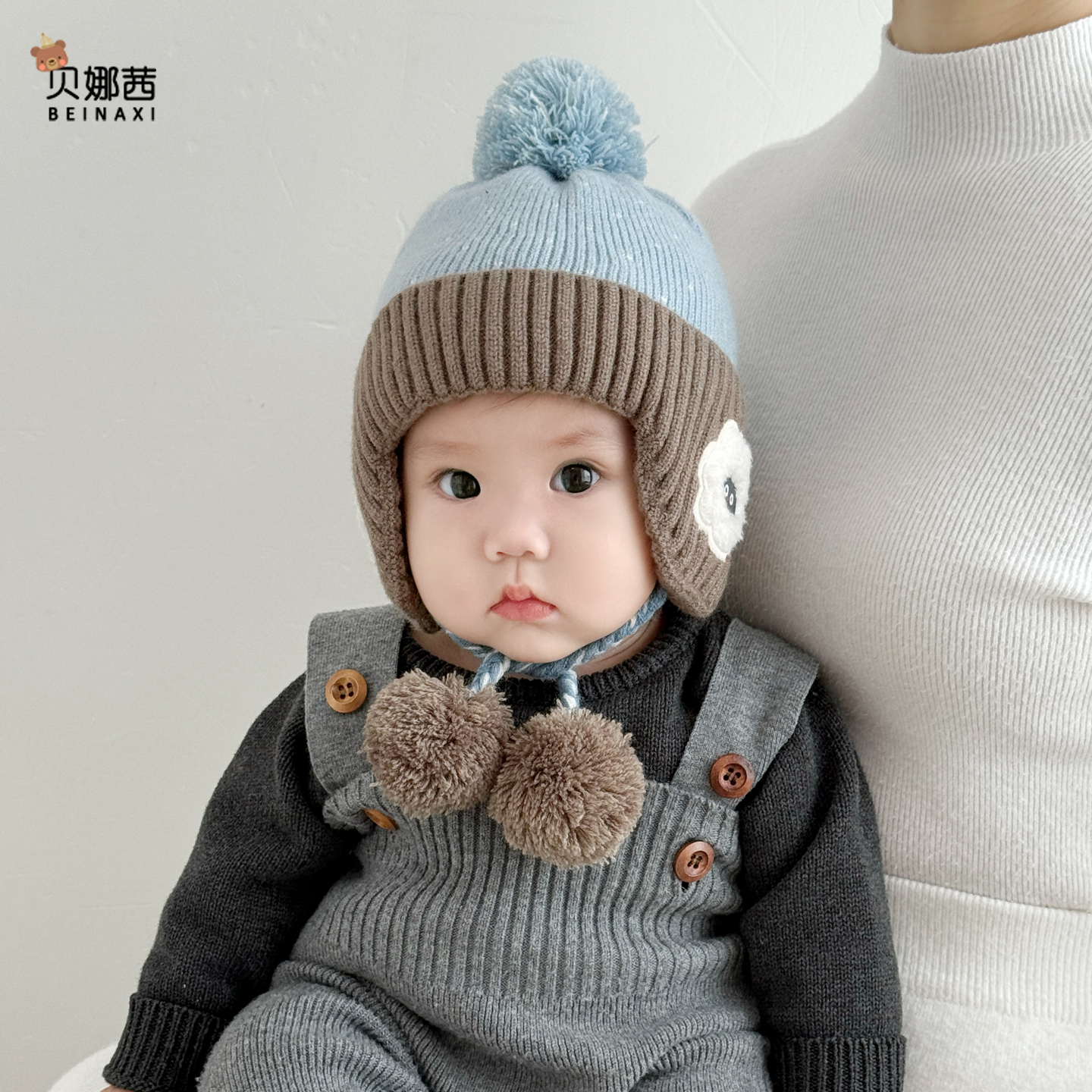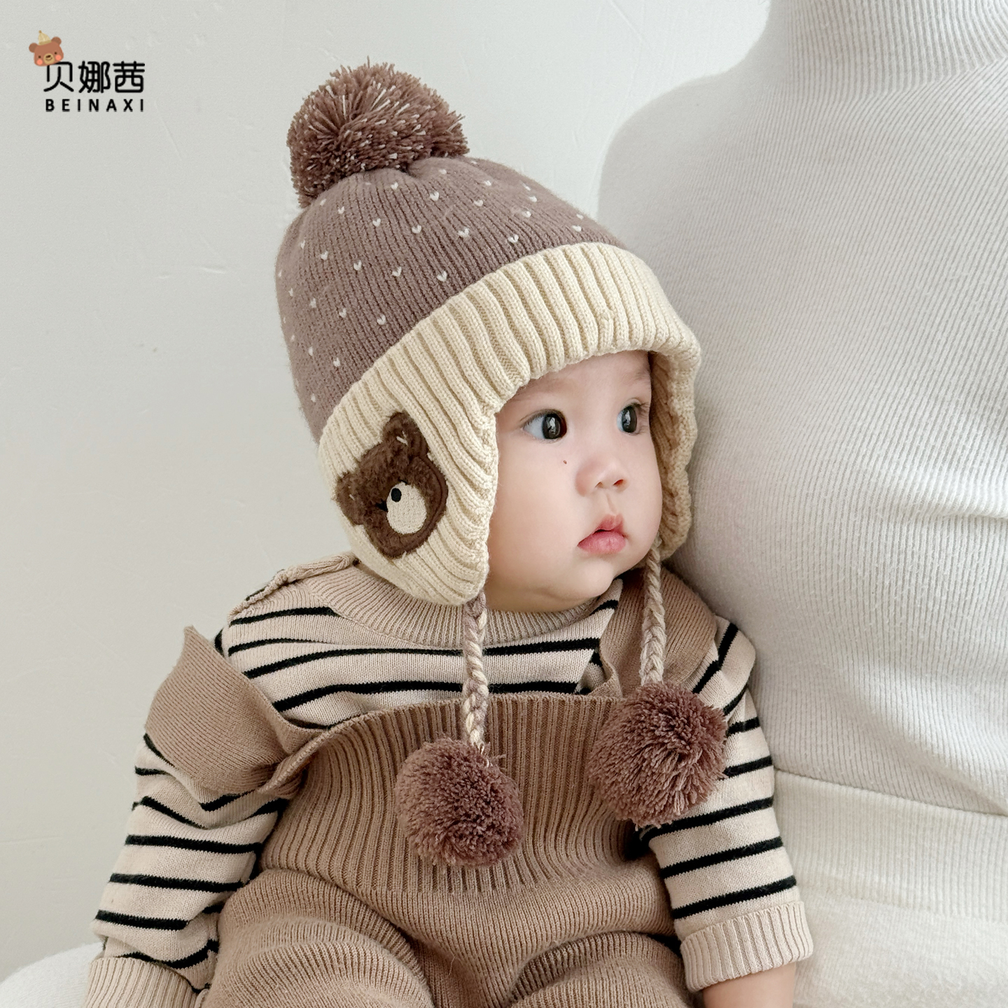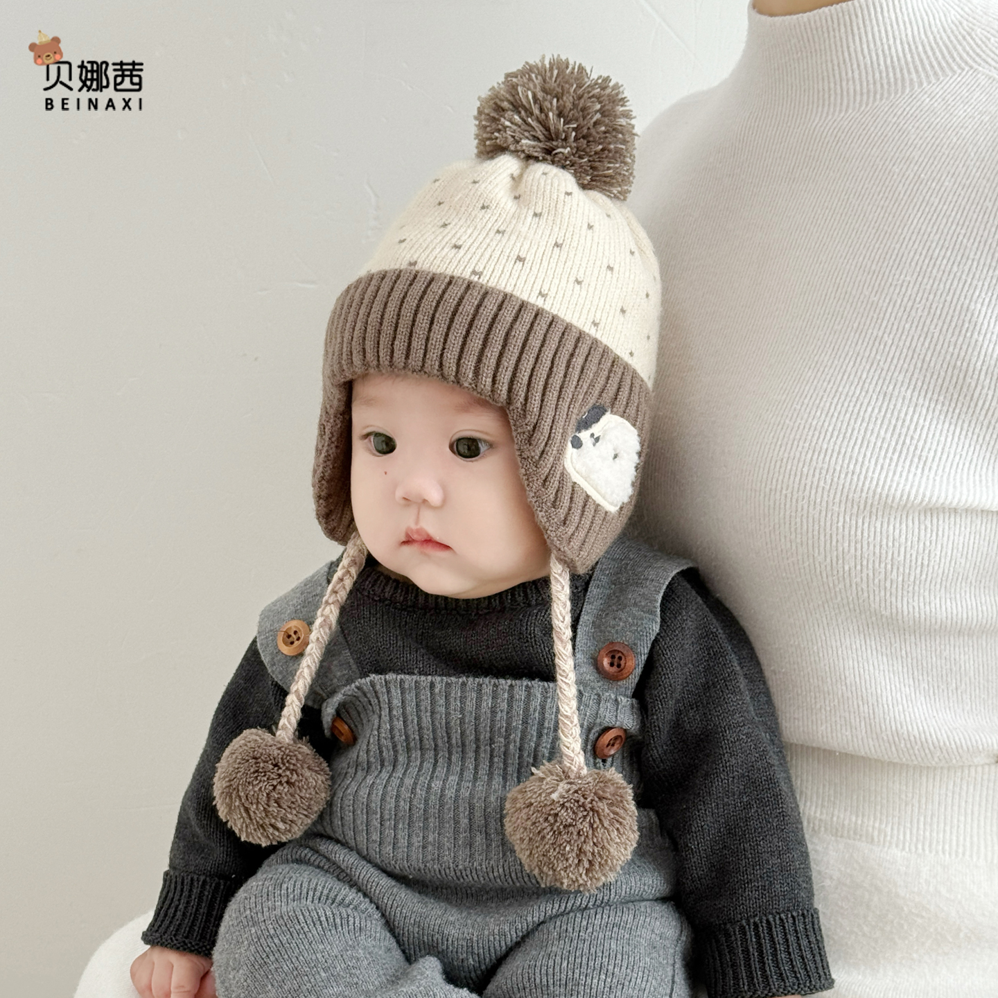 宝宝帽子秋冬婴幼儿可爱针织帽男童女童冬季毛线帽儿童外出护耳帽