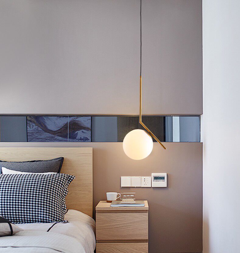 轻奢球形吊灯北欧简约餐厅吧台卧室床头创意泡泡磨砂白玻璃圆球灯