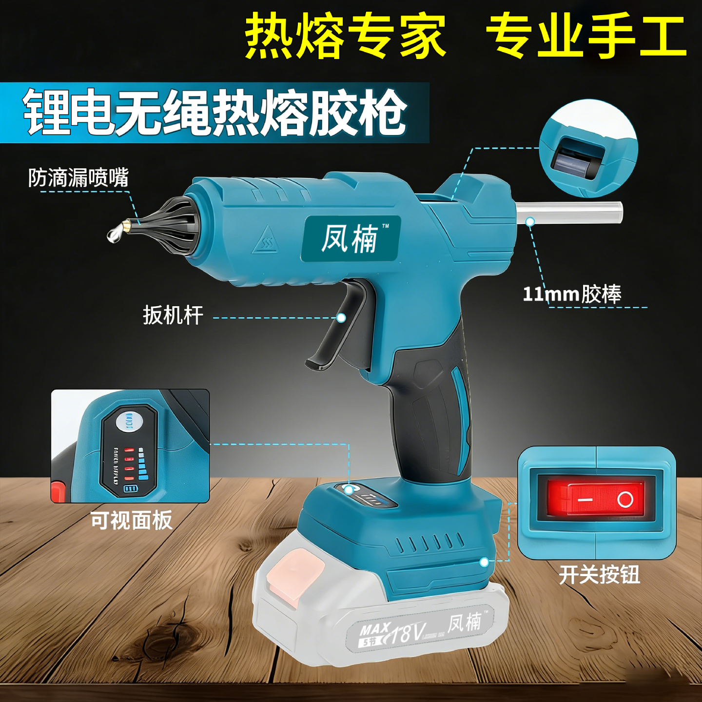 工业级无线锂电充电式11mm通用牧田款热熔胶枪家用儿童手工热胶枪