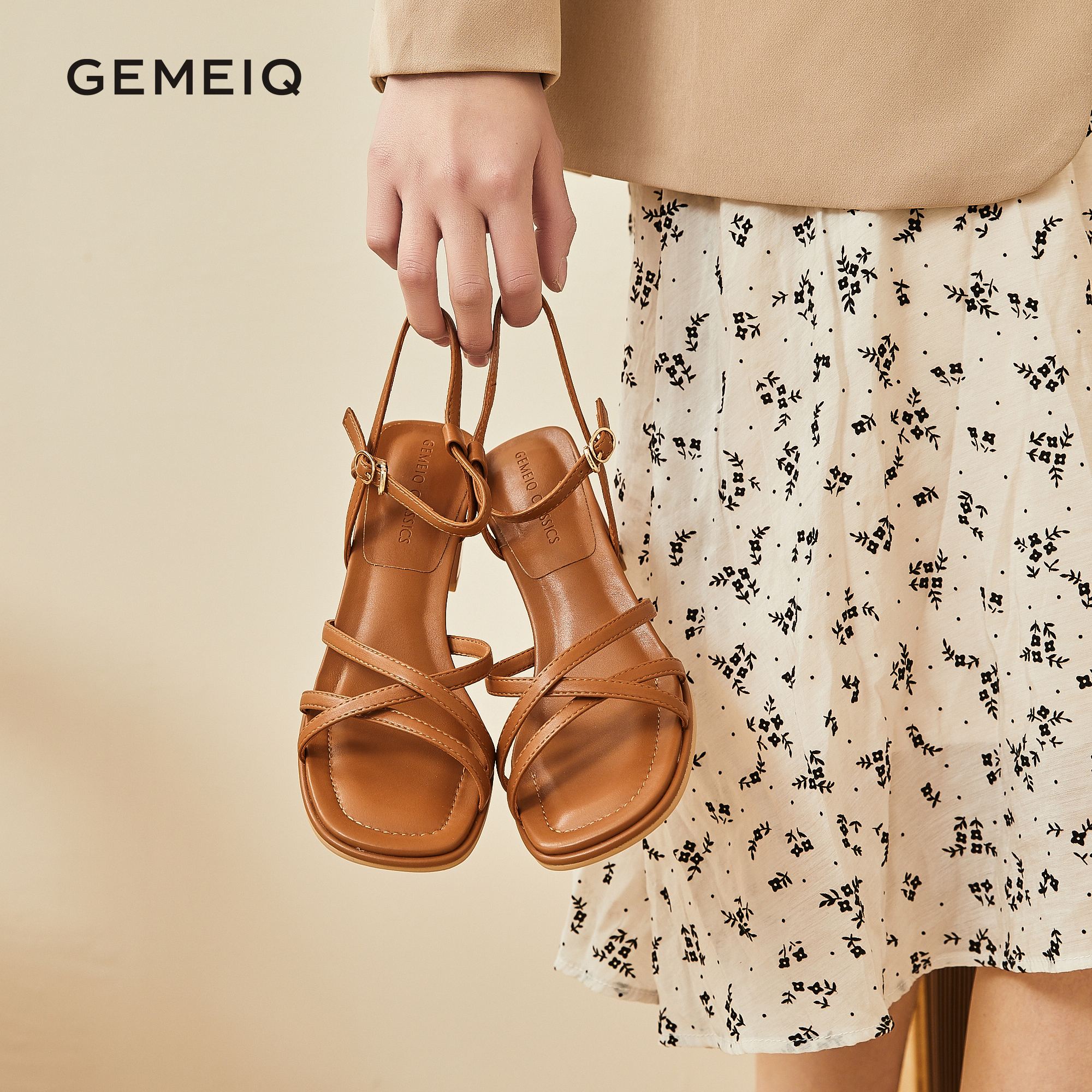 戈美其女鞋夏时装凉鞋2025年新款百搭一字带中跟粗跟高跟断码清仓
