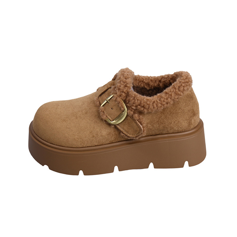 加绒松糕厚底深口单鞋女增高勃肯鞋毛绒2025新款冬季玛丽珍毛毛鞋