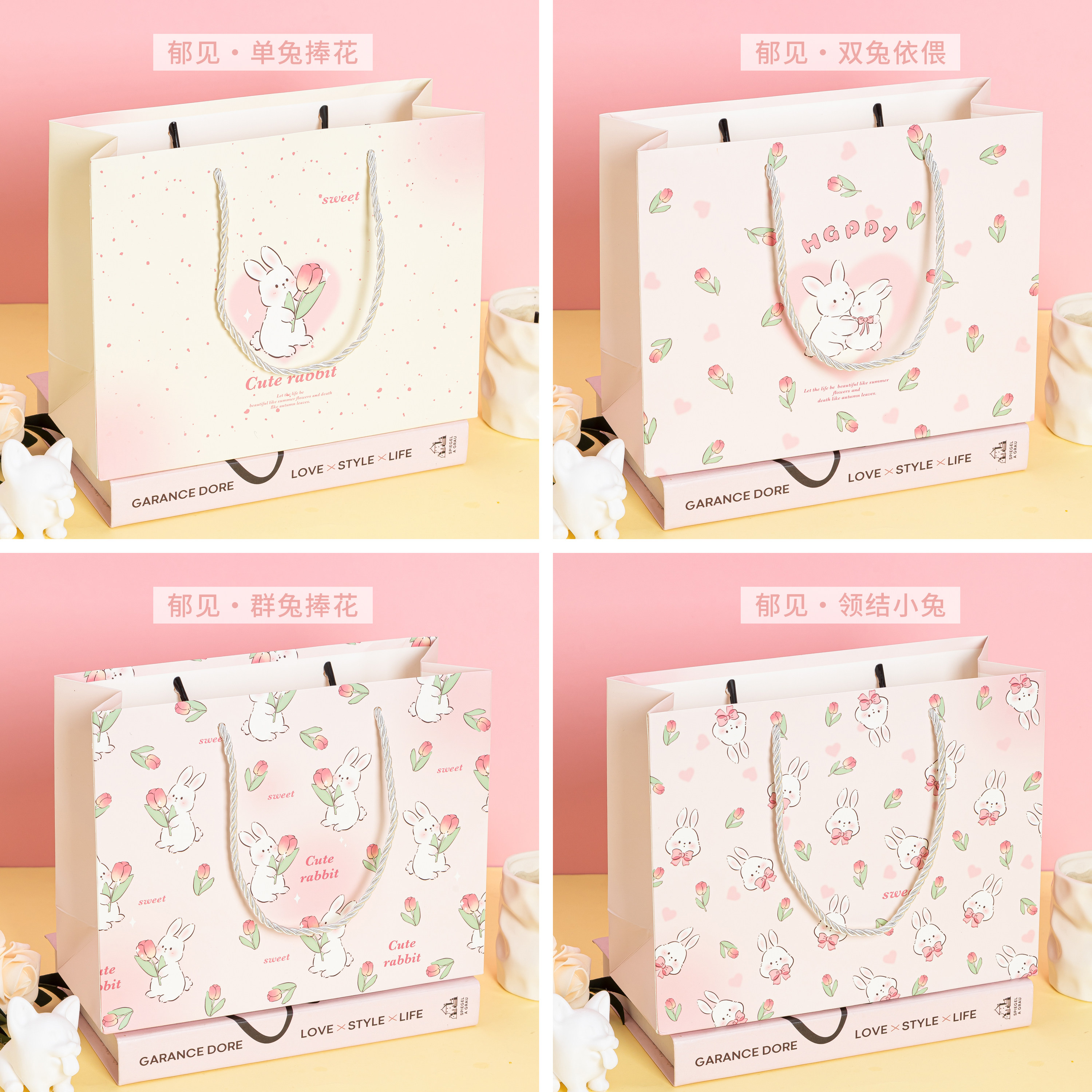 可爱卡通礼品袋白板纸三股绳手提袋大容量托特包包装袋