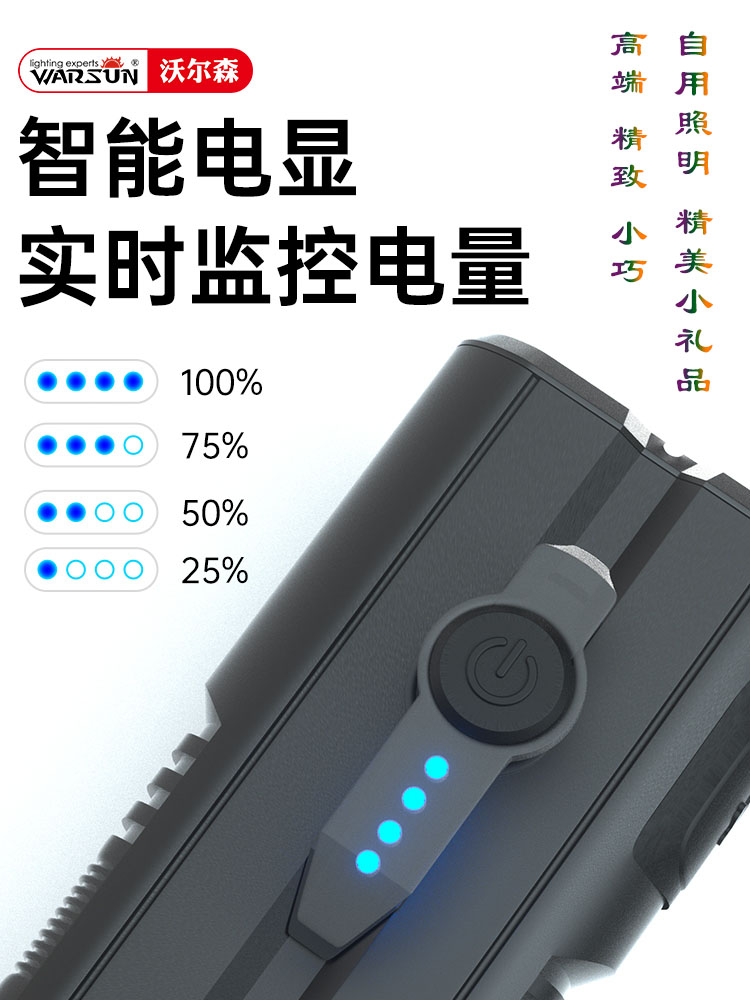 沃尔森迷你手电筒超亮多功能强磁吸充电便携灯光户外家用led小型x