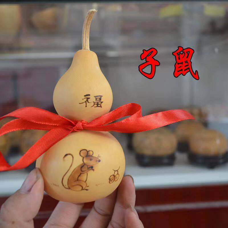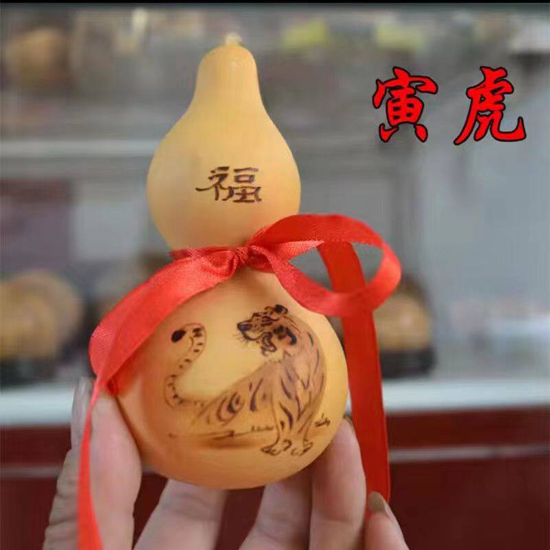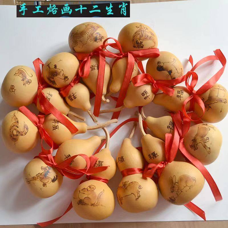 天然葫芦摆件家居装饰品转运十二生肖家用手工烙画雕刻小葫芦儿童