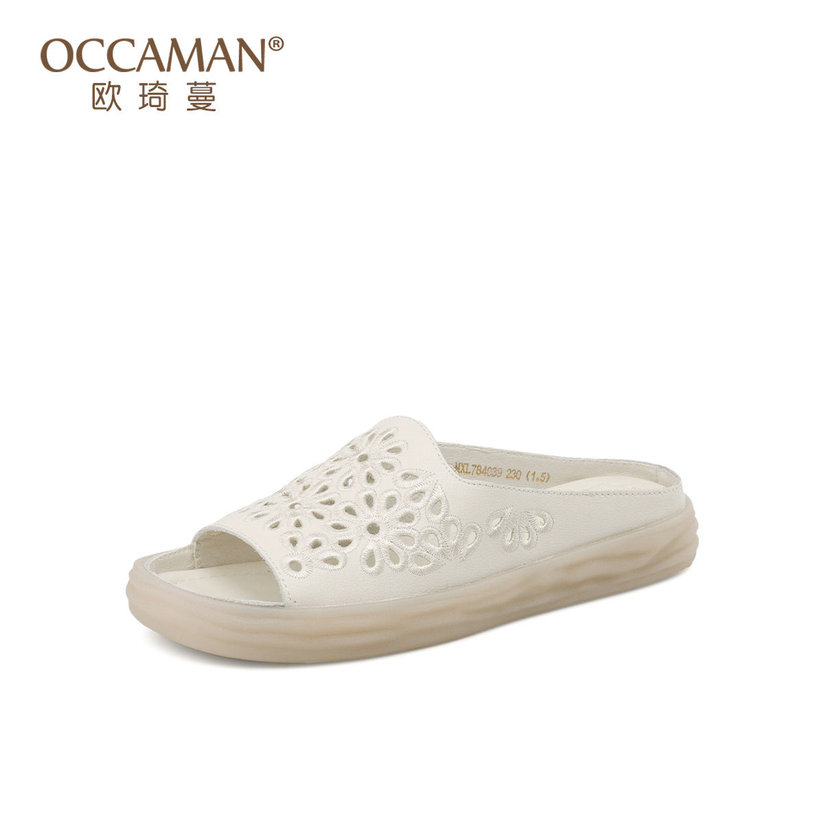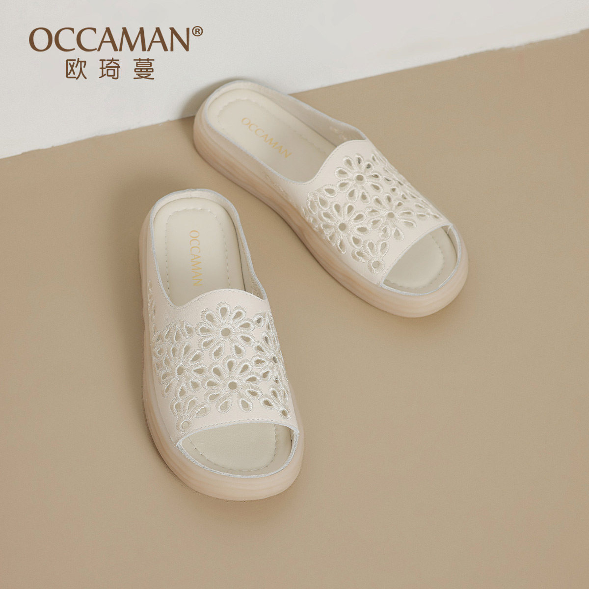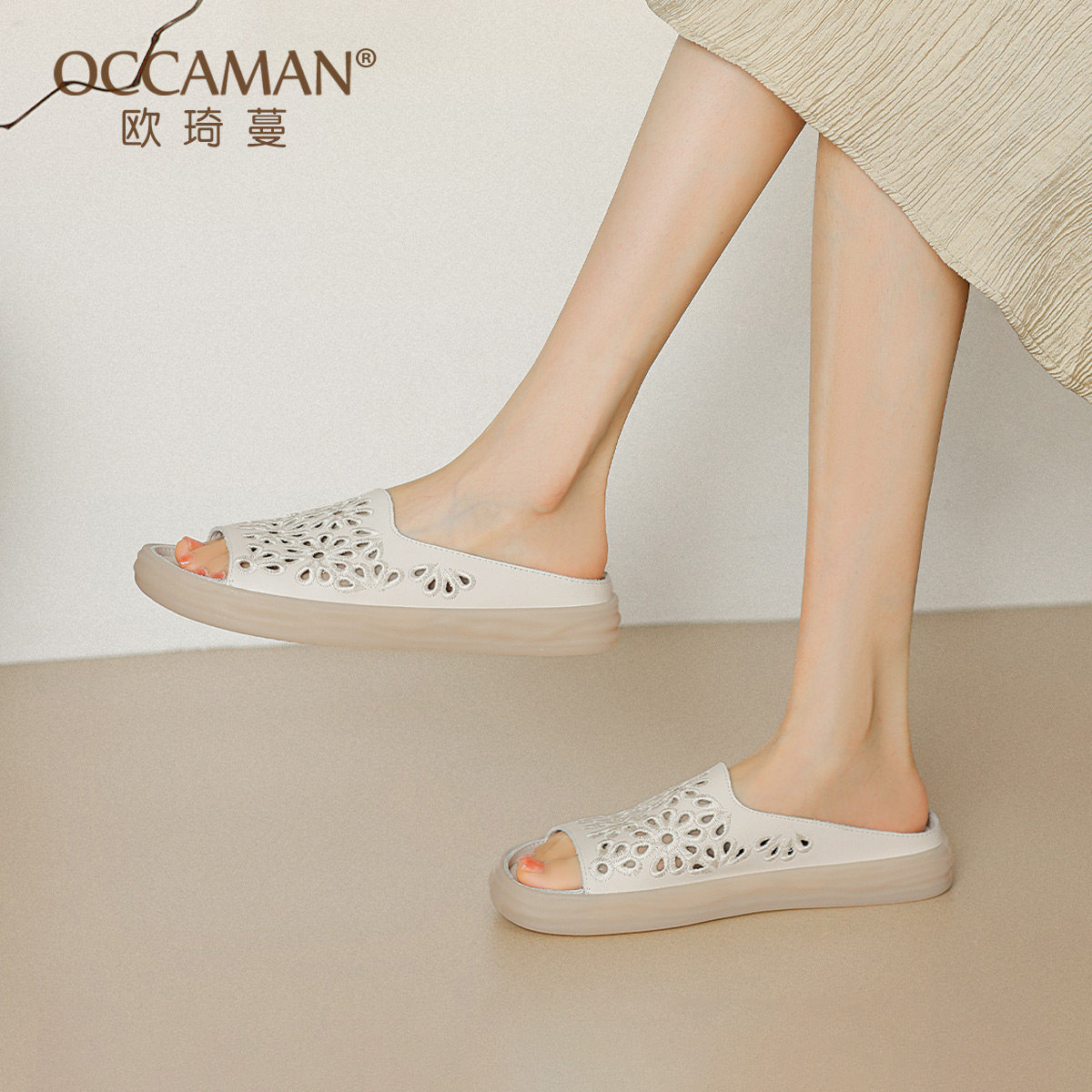 OCCAMAN/欧琦蔓女鞋真皮一字拖凉鞋2025春夏新款镂空洞洞鞋拖鞋