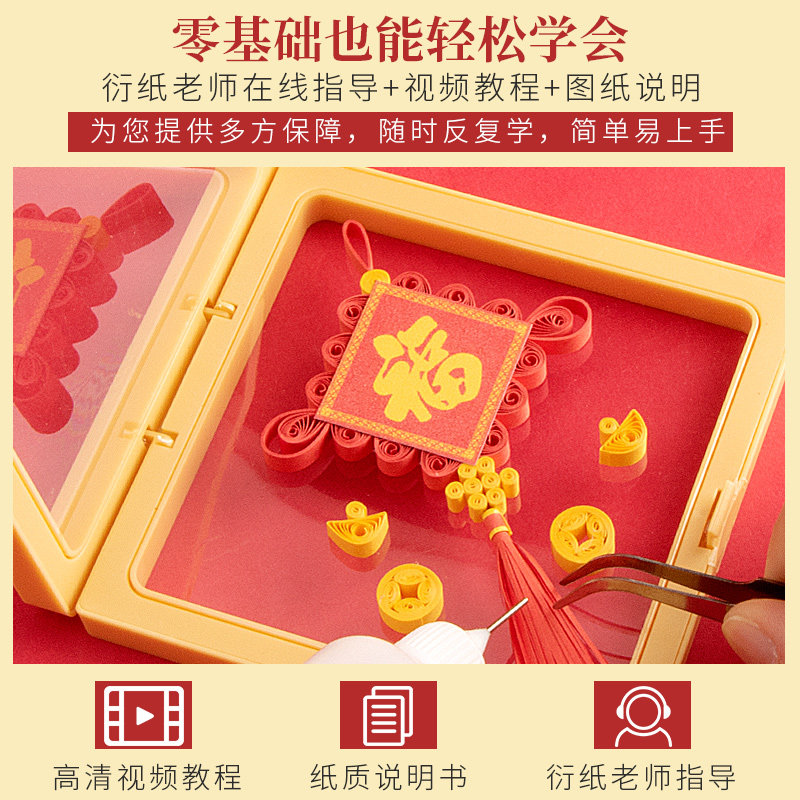 衍纸艺2026新年方格衍纸手工diy材料包招财装饰摆件元旦中国风礼物自制活动暖场春节衍纸工具套装手工折纸