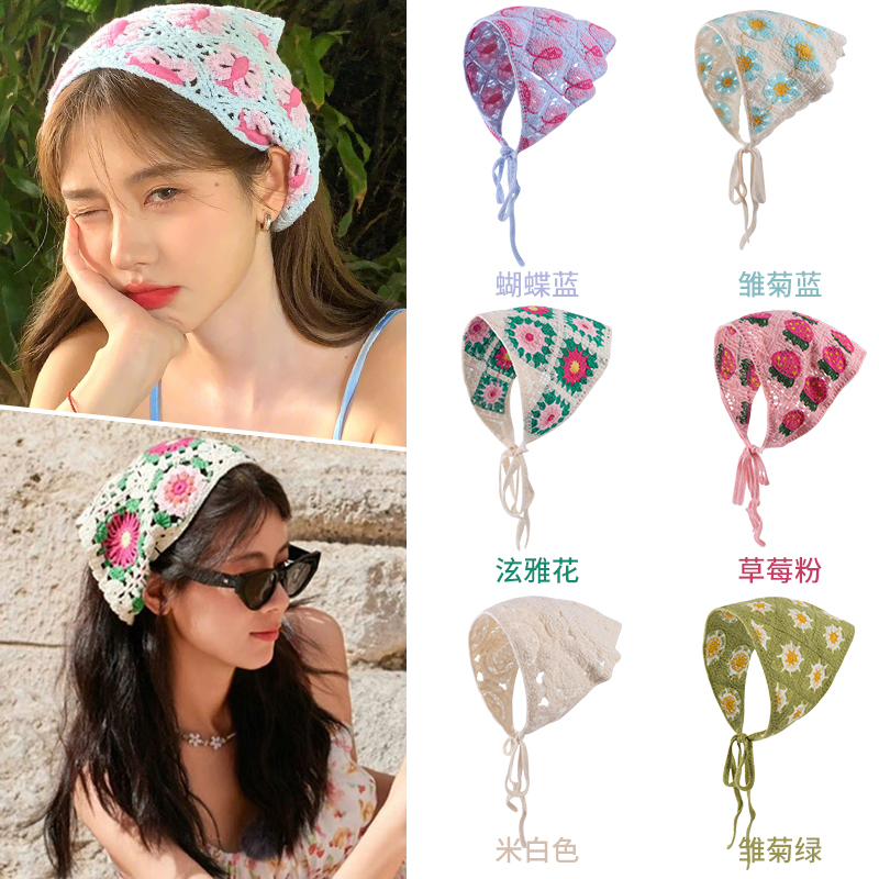 田园风头巾女2025新款海边出游可爱发带针织三角巾高级感包头发巾