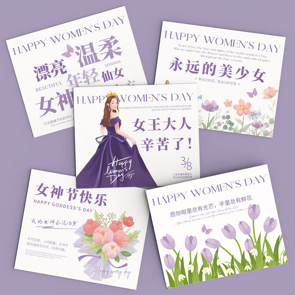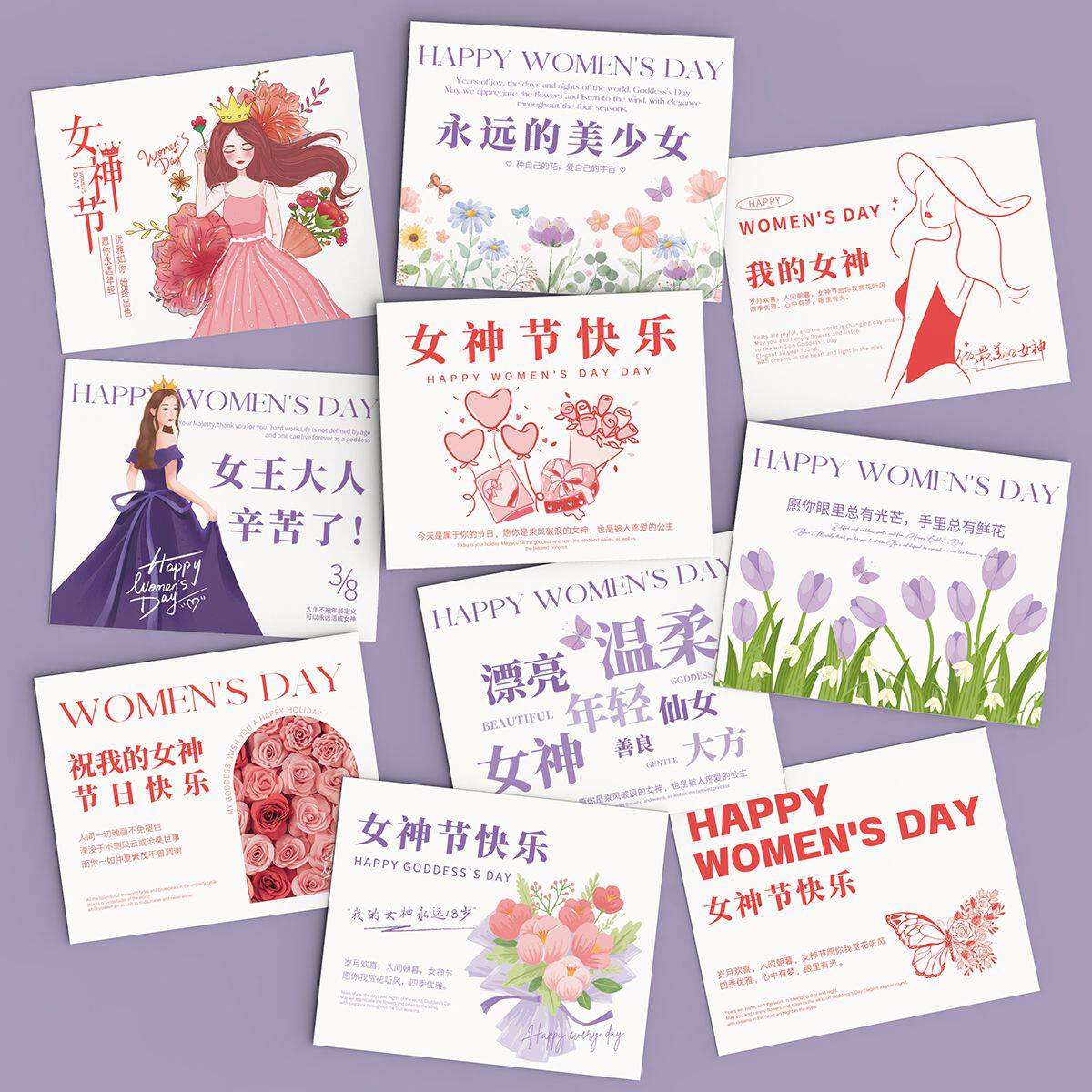新款女神节贺卡38妇女节日卡片简约款留言卡花店花束蛋糕店定制卡