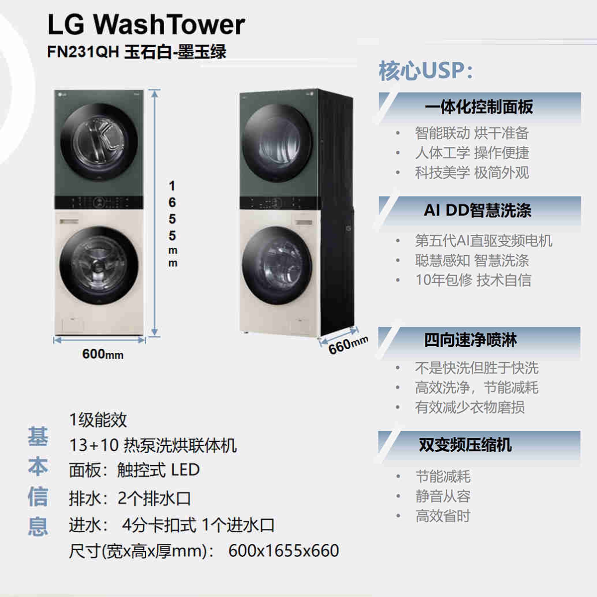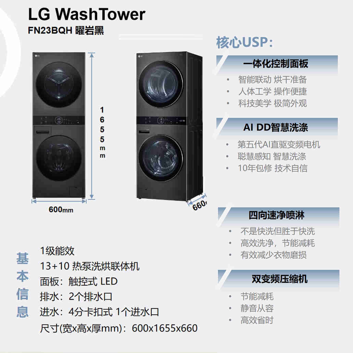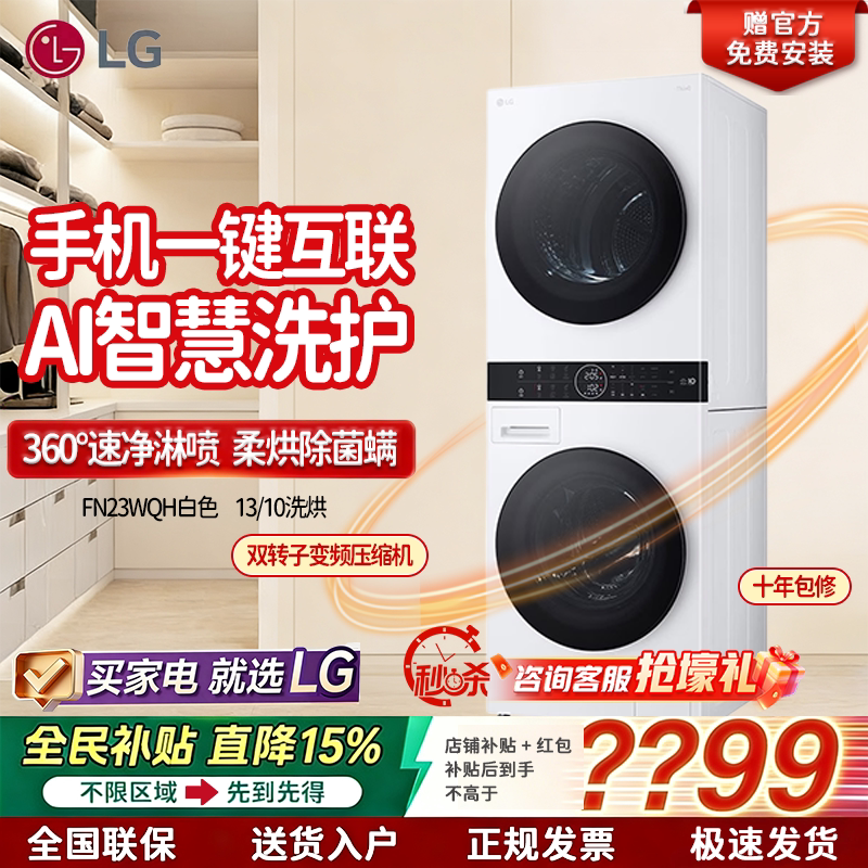 LG FN23WQH洗烘塔 全自动洗衣机 LG洗烘套装 家用13+10kg组合