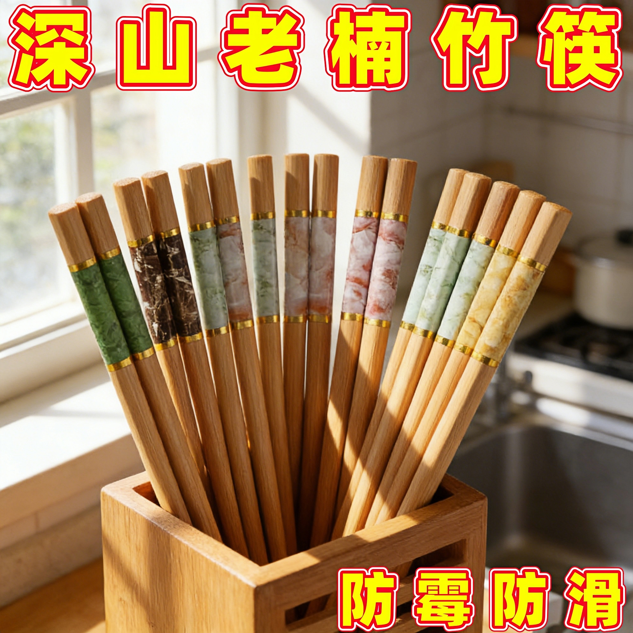 筷子家用高档耐高温竹木筷成人防霉防滑一人一筷分色家庭卫生餐具
