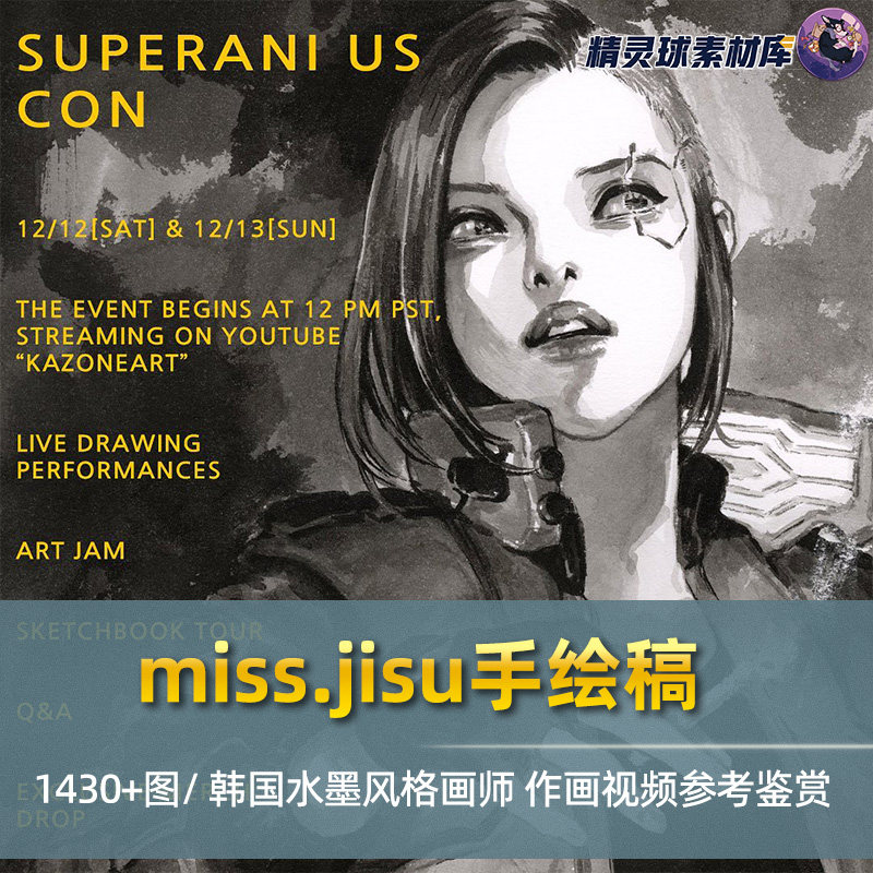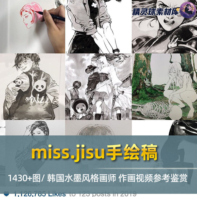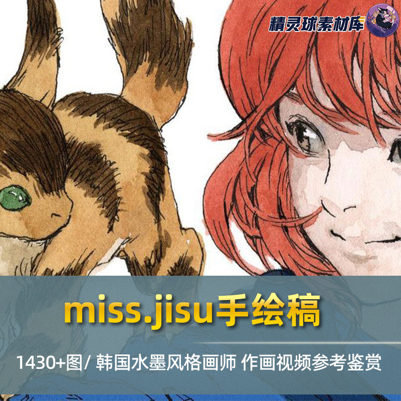 miss.jisu手绘稿 韩国水墨风格画师作品鉴赏线稿临摹绘画录屏视频