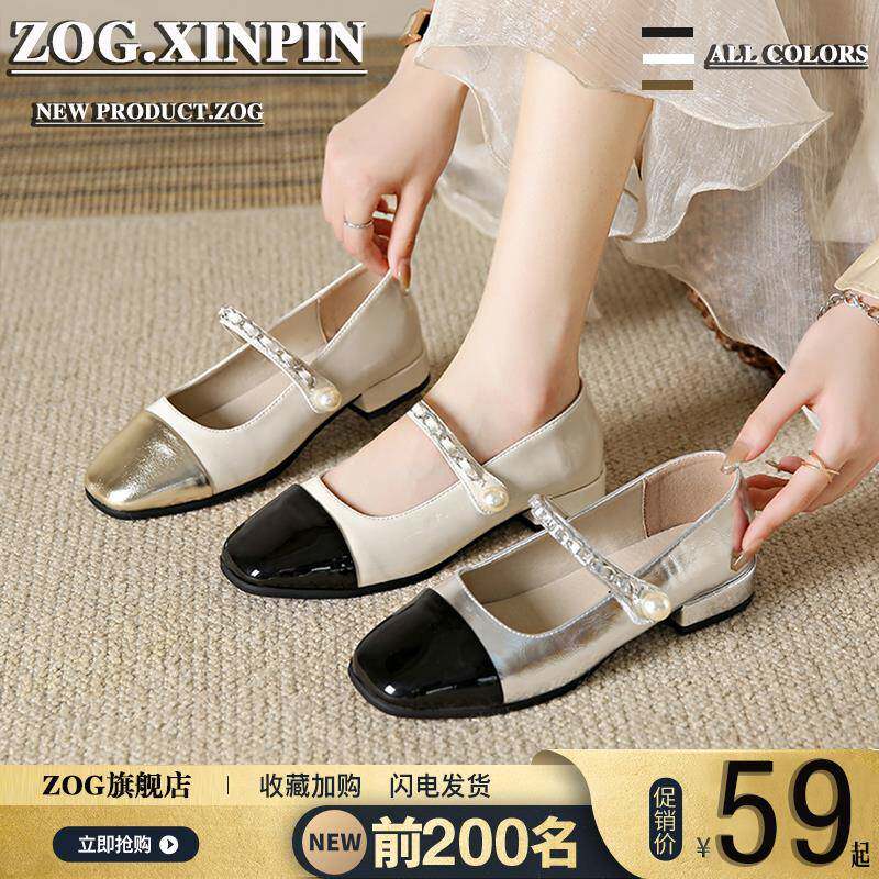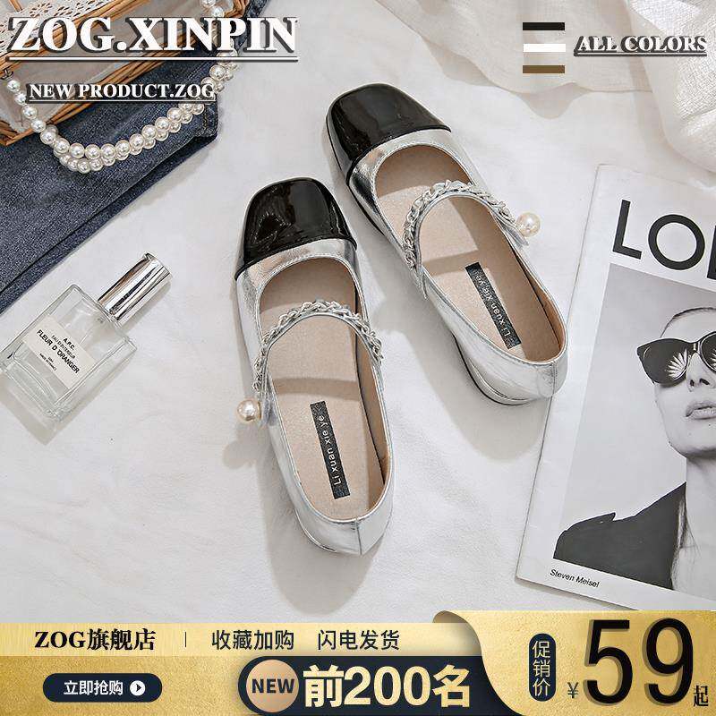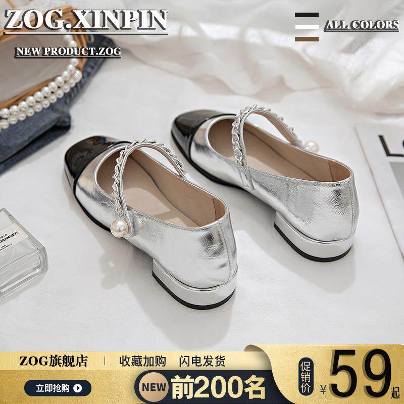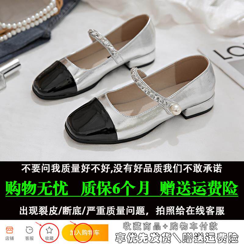 玛丽珍女鞋夏季银色单鞋女2024新款粗跟小皮鞋法式浅口方头配裙子