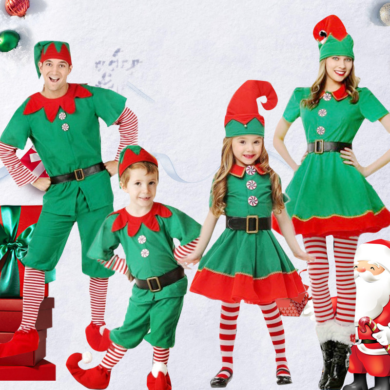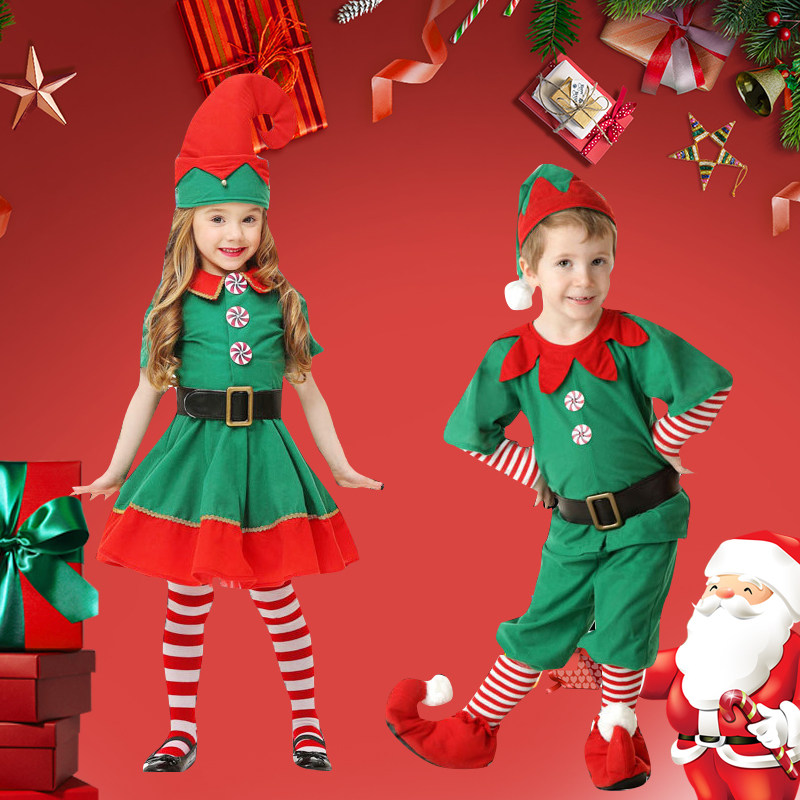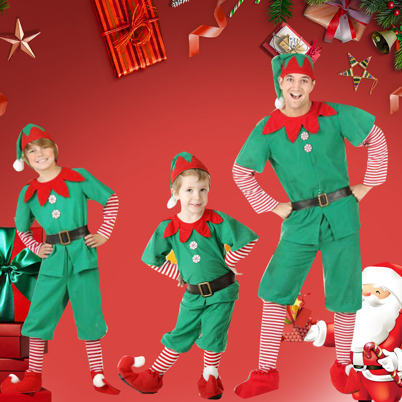 圣诞节儿童亲子cos服男女童套装圣诞精灵表演服幼儿园元旦演出服