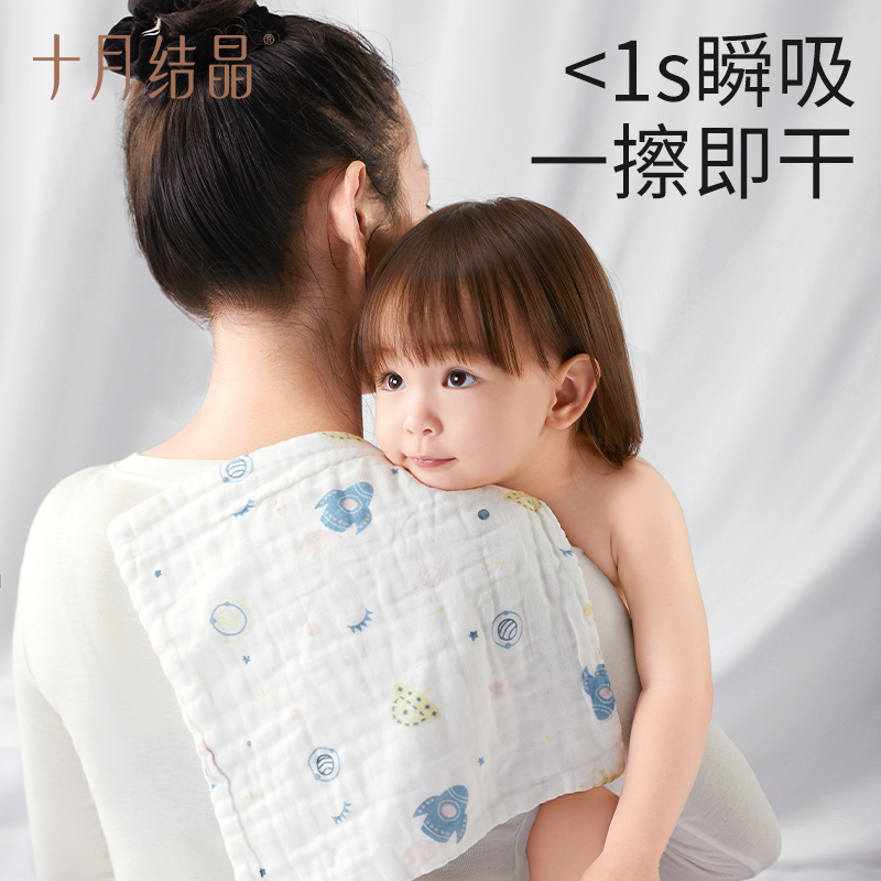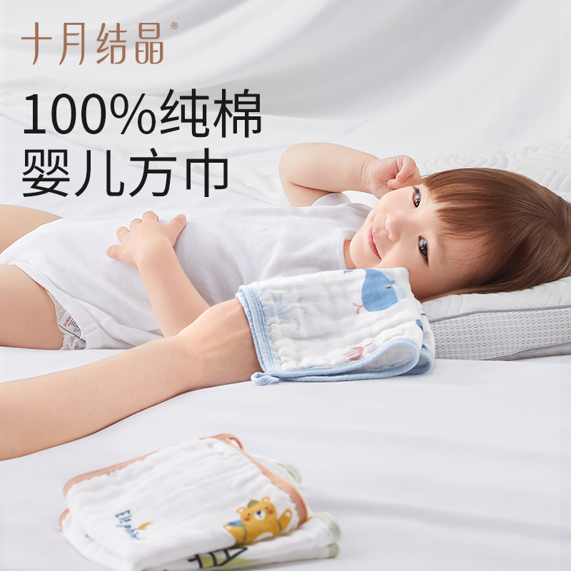十月结晶婴儿口水巾宝宝超柔洗脸巾小方巾儿童纯棉纱布毛巾6条装