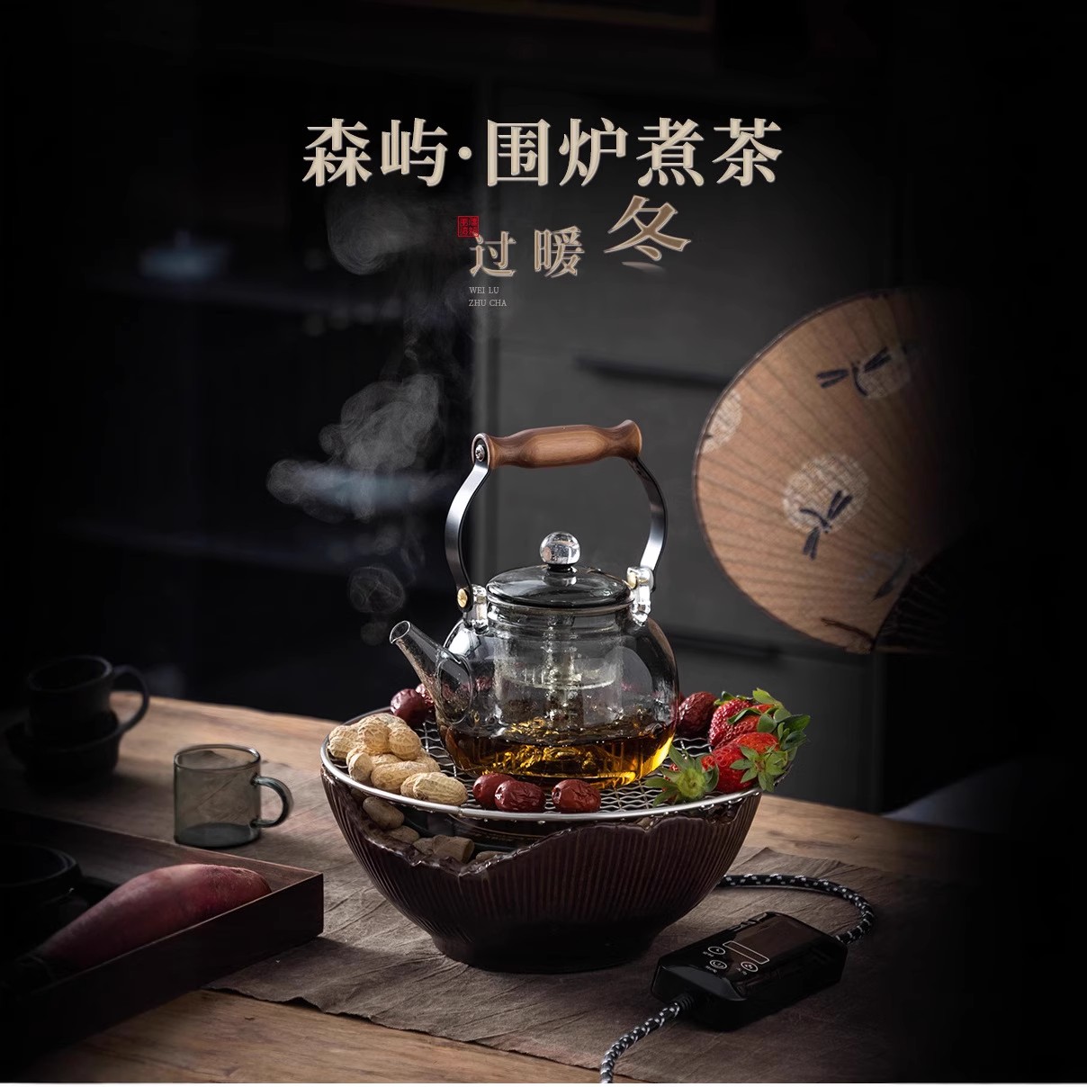 玻璃煮茶壶耐高温大容量围炉煮茶茶壶提梁室内家用围炉煮茶电陶炉