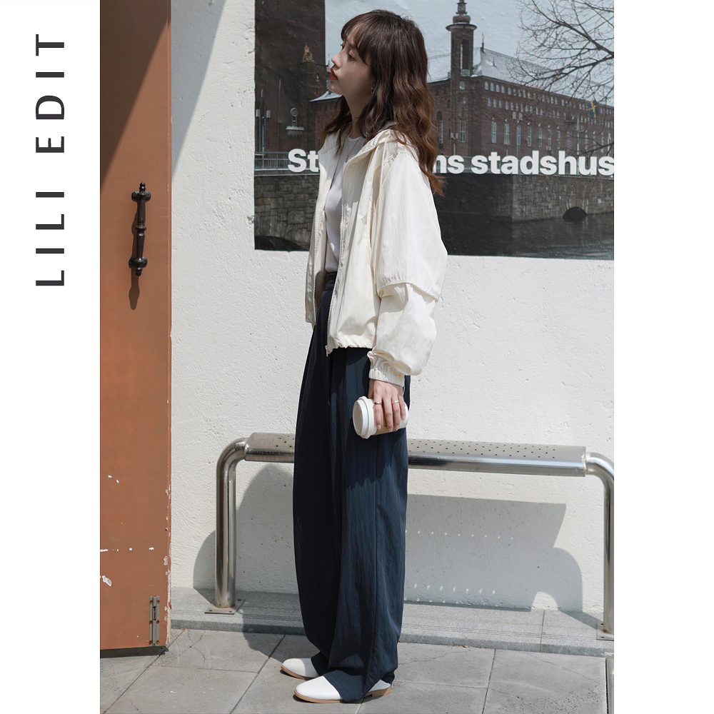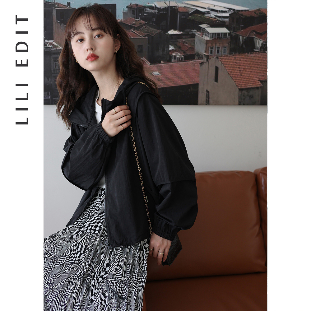 LILI EDIT/连帽休闲小个子薄款宽松外套女秋运动百搭冲锋衣上衣