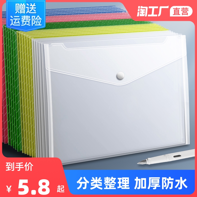 a4文件袋透明塑料加厚大容量防水按扣式试卷收纳袋子小学生用档案资料袋信封文件夹包文具商务办公用品公文袋