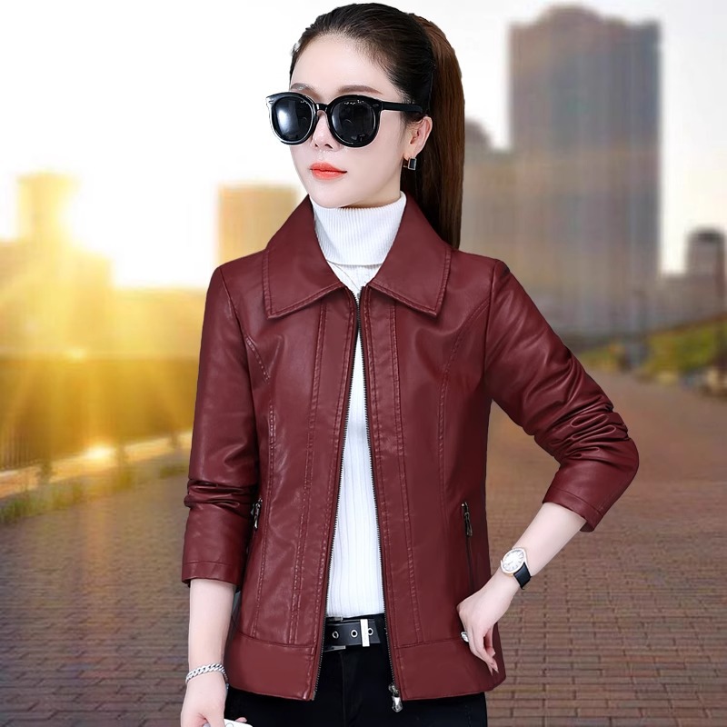 皮衣外套短款女士加绒加厚女皮夹克2025新款秋冬时尚翻领女装上衣