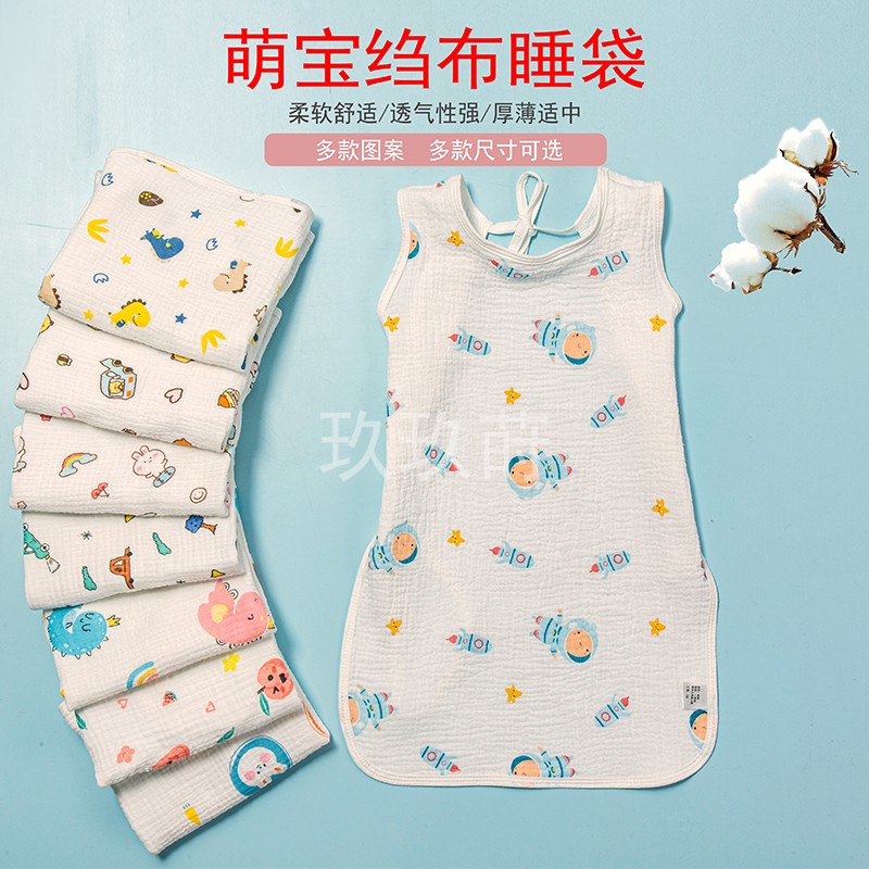 婴儿露背睡袋纯棉纱布夏季薄款宝宝睡觉护肚防踢被盖肚子防凉肚兜