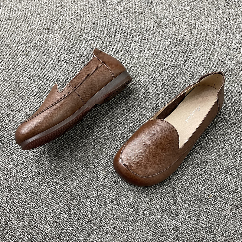 真皮软底妈妈鞋单鞋女鞋子舒适平底2025中老年一脚蹬皮鞋春秋新款