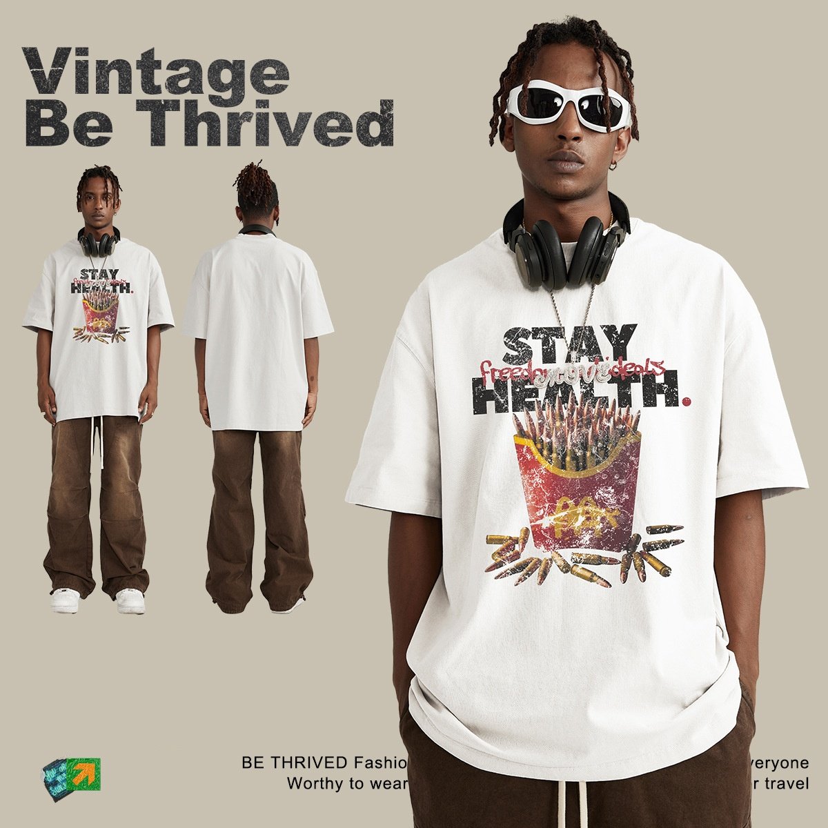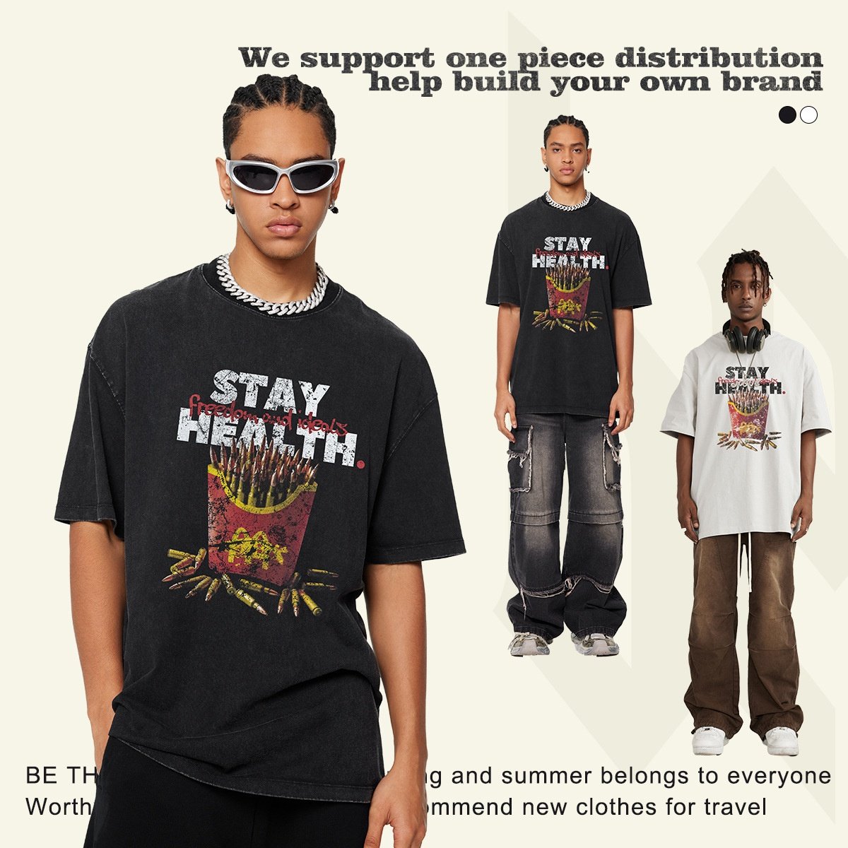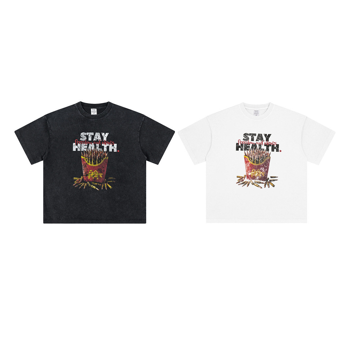 春夏新款创意印花圆领短袖ins街头潮牌纯棉薯条恶搞图案短袖t恤男