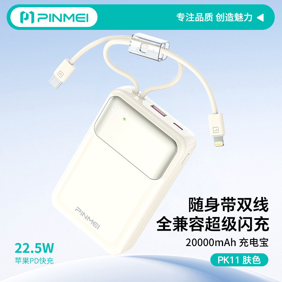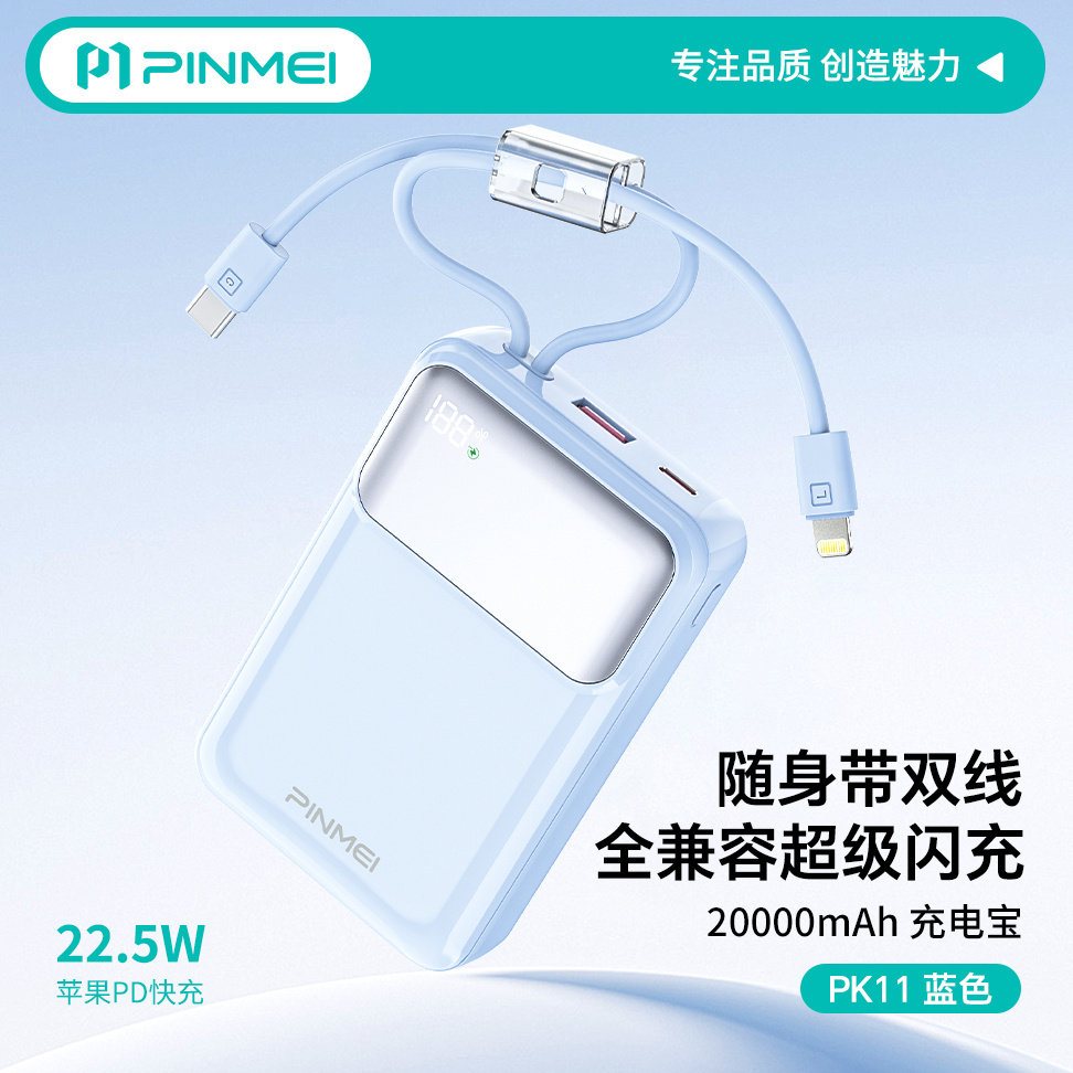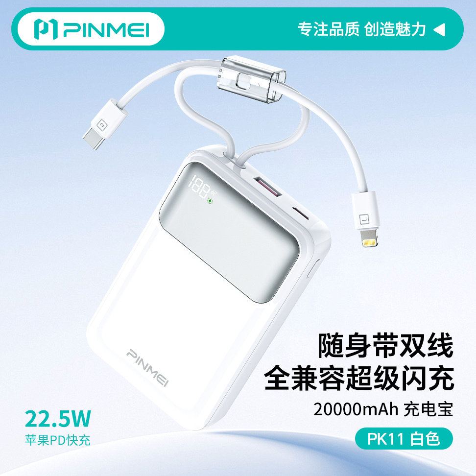 品魅PK11 快充自带线充电宝20000毫安大容量迷你移动电源3C可登机