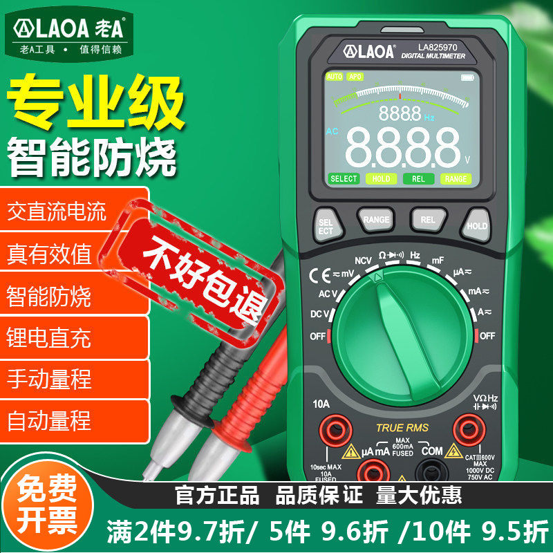 老A 全自动数字万用表高精度多功能电工专用锂电款交直流电流电表