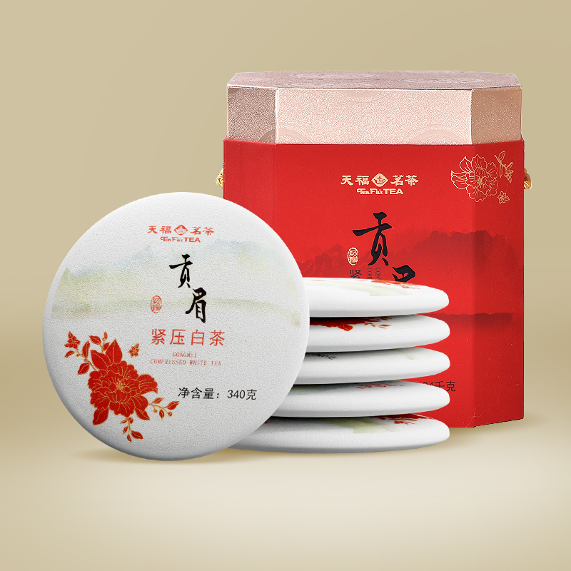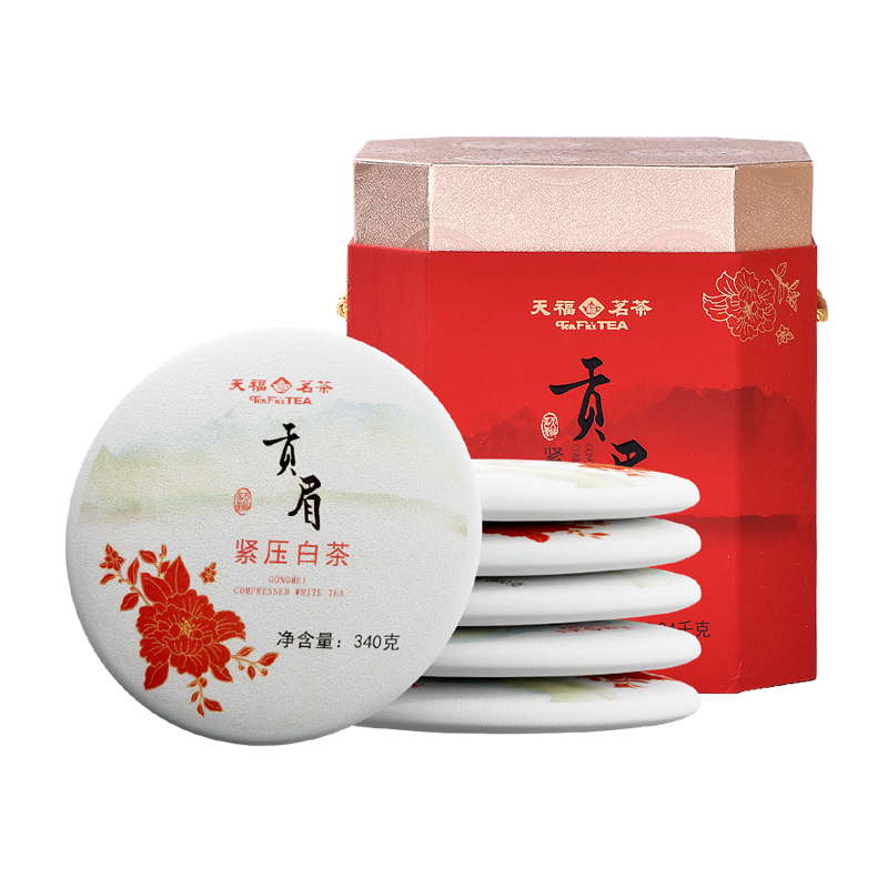 天福茗茶 贡眉紧压白茶 福建特产茶 白茶 礼盒装6饼