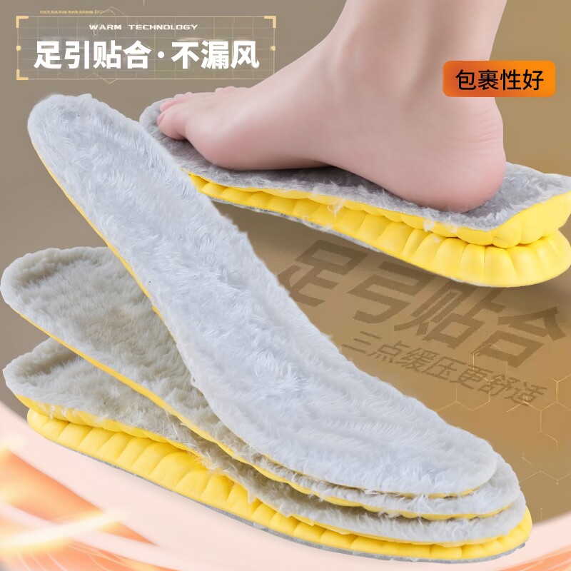 毛绒鞋垫冬季保暖男女加绒加厚运动减震超软踩屎感棉鞋垫吸汗防臭
