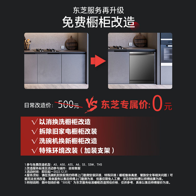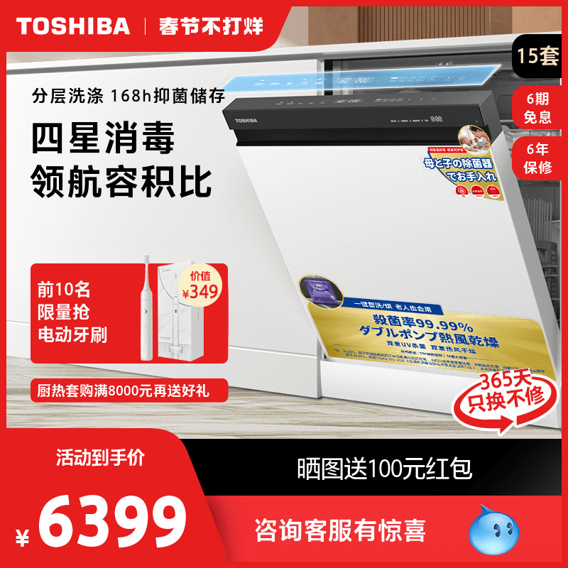 东芝洗碗机自动大容量15套家用变频独立式嵌入式消毒白色A50